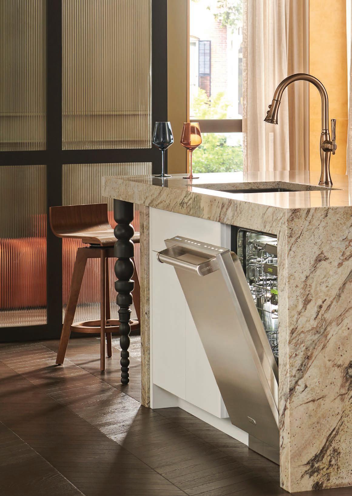 With a striking stainless-steel interior with a clean design that has no visible screws, and interior LED lights that provide greater visibility, your Cove Dishwasher will coordinate perfectly with classic Sub-Zero and Wolf stainless-steel appliances or accept custom panels to integrate with your kitchen cabinets. Now, ADA-heightcompatible models allow for handleless designs to be achieved with a custom panel, making Cove even more adaptable to any home and homeowner. With its hidden control panel and discreet status light, your Cove Dishwasher will virtually disappear into your kitchen.