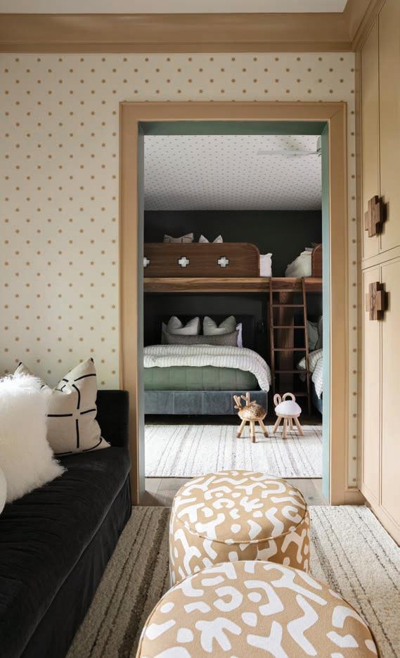 The house is nestled on the side of a mountain, and the homeowners wanted that reflected in every aspect: neutral tones, earthy walls, natural stone, and a luxurious but rustic touch. The palette is deep green and has a range of taupes, but the primary “color” is actually texture. The client responded so well to our options for soft fabrics, fine linens, and several versions of alpaca. Used together, they make for a complex, layered finish.