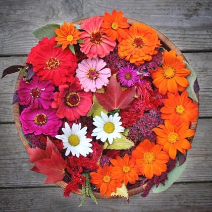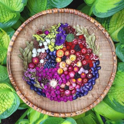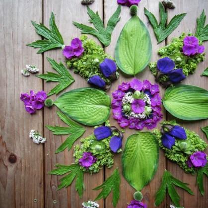 GREETING CARDS FLOWER BASKET COLLECTION • The flower basket collection features the beautiful plants and flowers the artist grows in her garden and forages to make mandala art.