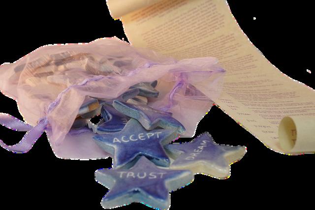 Each Dream Star Set includes 22 handmade stoneware stars with hand-painted words such as “Trust”, “Believe”, “Play”, and “Grow” that will assist you in making your dreams come true. Included is a scroll, which provides a powerful explanation of each of the dream star words and a meditation to manifest your dreams. Each set of stars is packaged in a beautiful purple 9x5 sheer pouch. We all have dreams, wishes and desires. Some of us have forgotten them! We can remember them, and master the process of making our dreams come true!
