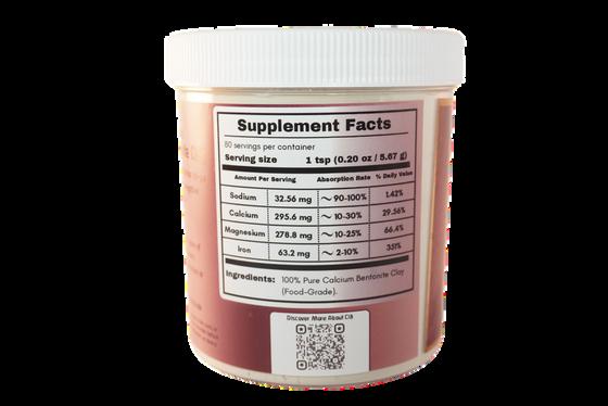 Gentle but Effective Calcium Bentonite Clay used for Detoxification. This calcium bentonite clay has a negative ionic charge which draws out heavy metals, chemicals, bacteria and viruses from the body through the skin. This is an ancient practice of indigenous peoples and animals.