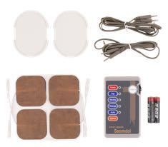 Portable electronic massager. 4 massage modes: tap, vibrating, massage and auto. 9 levels of strength. Includes 4 gel pads, 2 outputs. Uses 2 x AAA batteries (included).