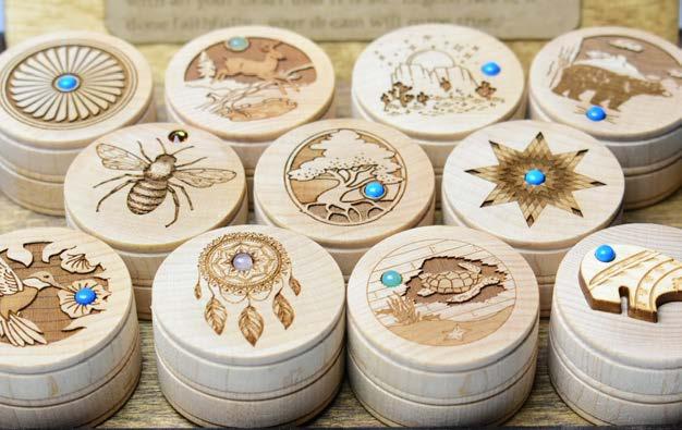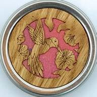 Metal Dreamboxes are small, metal boxes inlaid with paper cardstock and solid hardwood Cherry and Walnut veneers. Wood colors and cardstock colors come assorted only. A “Legend of the Dreambox” is included inside each box. (Size: approx. 21/8 ” in Diameter)