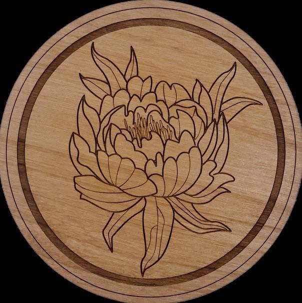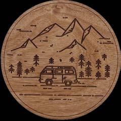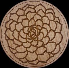 Our Coasters are laser cut from hand finished alder wood. Circle coasters are approximately 4” in diameter, square coasters are 4”x4” and all are 1/4” thick. They are finished with a protective layer of cork on the bottom. Coaster shown above is to scale.