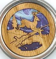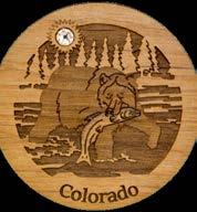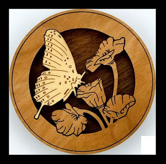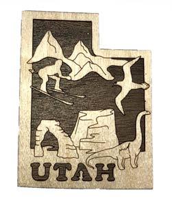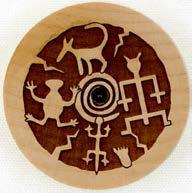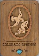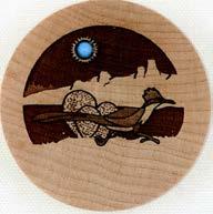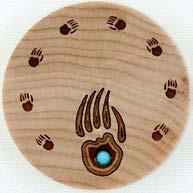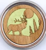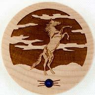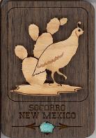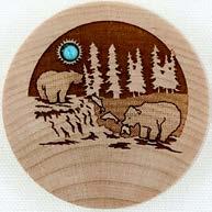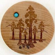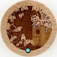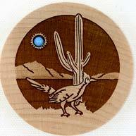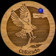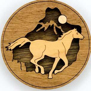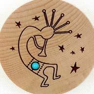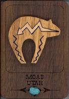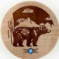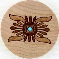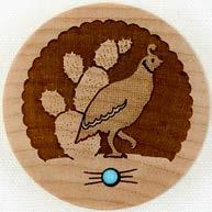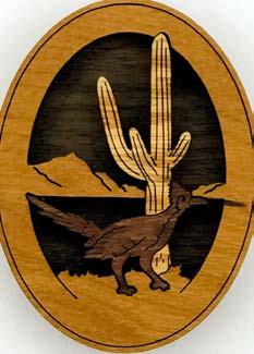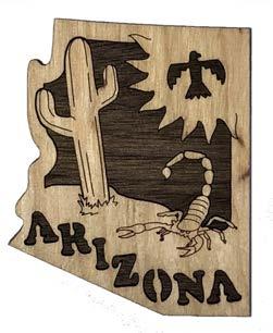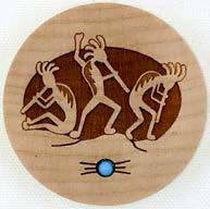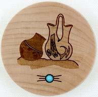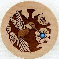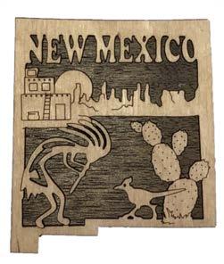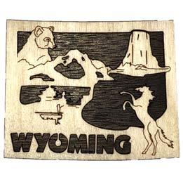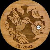 Natural Harmony Wood Magnets are laser carved from hand finished hardwoods, and then overlaid with solid hardwood sticky back appliqués. Turquoise oval cabochons are then inlaid creating unique gifts or souvenirs. They may be name dropped at no additional charge.