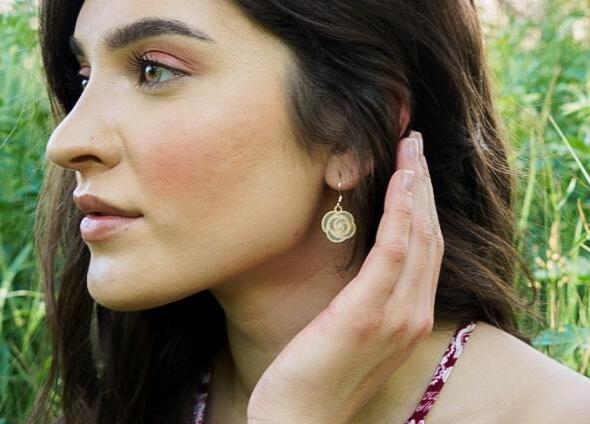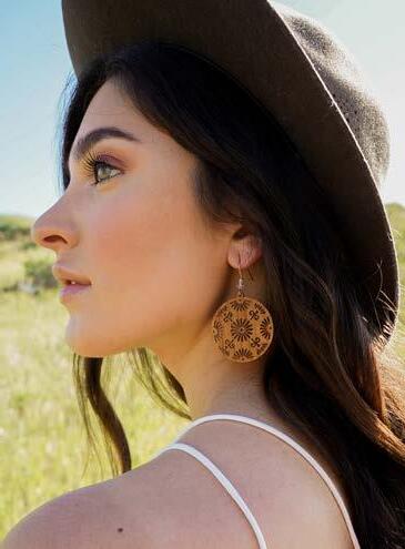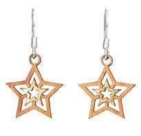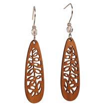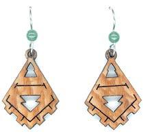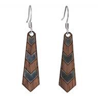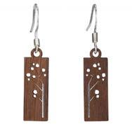 Twig wood jewelry is handcrafted from furniture grade veneers with silver foil accents, and stainless steel earwires. We use Maple, Cherry and Walnut, All of the wood is harvested from sustainable tree farms.
