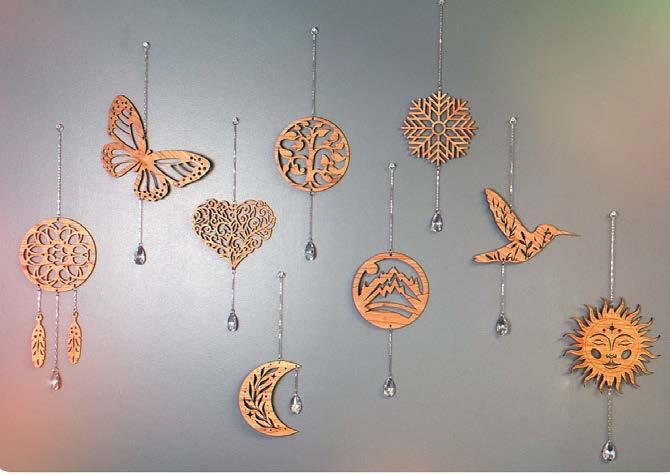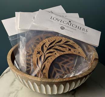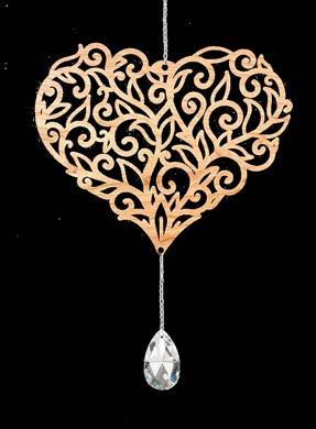 Our Lovecatchers are laser cut out of 1/8” hardwood cherry and adorned with a 1 1/2 inch faceted teardrop Asfour crystal hanging on a surgical steel chain. Comes packaged in a poly bag with hang card.