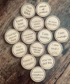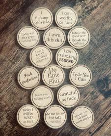 Stay positive with our Wood Affirmation Tokens. These tokens, are perfect to remind yourself and others of the power of positive thinking. Spread the good vibes with our affirmation tokens! Available in two different packs- non sweary and the sweary kind.