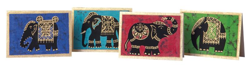 4 batik hand painted cards with ungummed envelopes made by artisans at St Joseph’s Hospital, Mangalore, India. Supplied by MESH. Blank inside for your own special message.