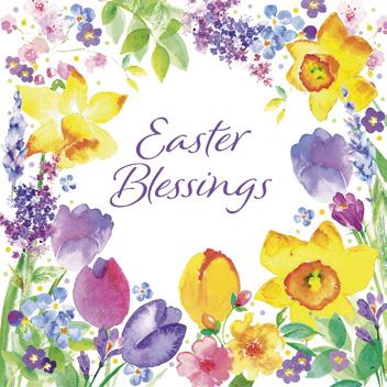 Easter card packs contain 4 cards of one design. Size: 12.5 x 12.5cm.