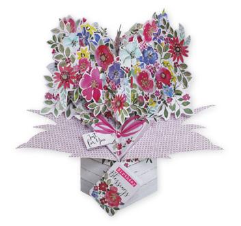 Bless your loved ones with an extra special card! These stunning cards pop-up into a 3D arrangement when removed from their envelope! Includes spaces to write your message. Requires a large letter stamp. Size: 13 x 19cm.