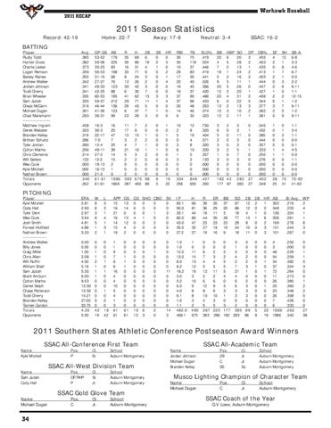 Player Rusty Todd Hunter Cross Charlie Lester Logan Remson Baxley Raines Andrew Walker Jorden Johnson Todd Cherry Brian Wheeler Sam Judah Chezz McCann Michael Dugan Chad Mansmann -------------------Matthew Ingram Derek Webster Branden Kelley Brittian Schultz Tyler Jordan Colton Mathis Chris Clements Will Sellers Wes Cook Kyle Mitchell Nathan Brown Totals Opponents