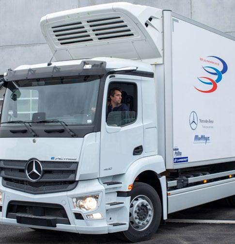 Van Mieghem Logistics heeft gekozen voor de eActros 400 met vier batterijpakketten. Dit geeft de distributietruck een autonomie van ongeveer 400 km. Matthys nv uit Drongen is verantwoordelijk voor de montage van de volledig elektrische koelgroep en de diepvriesopbouw. Dankzij de keuze voor