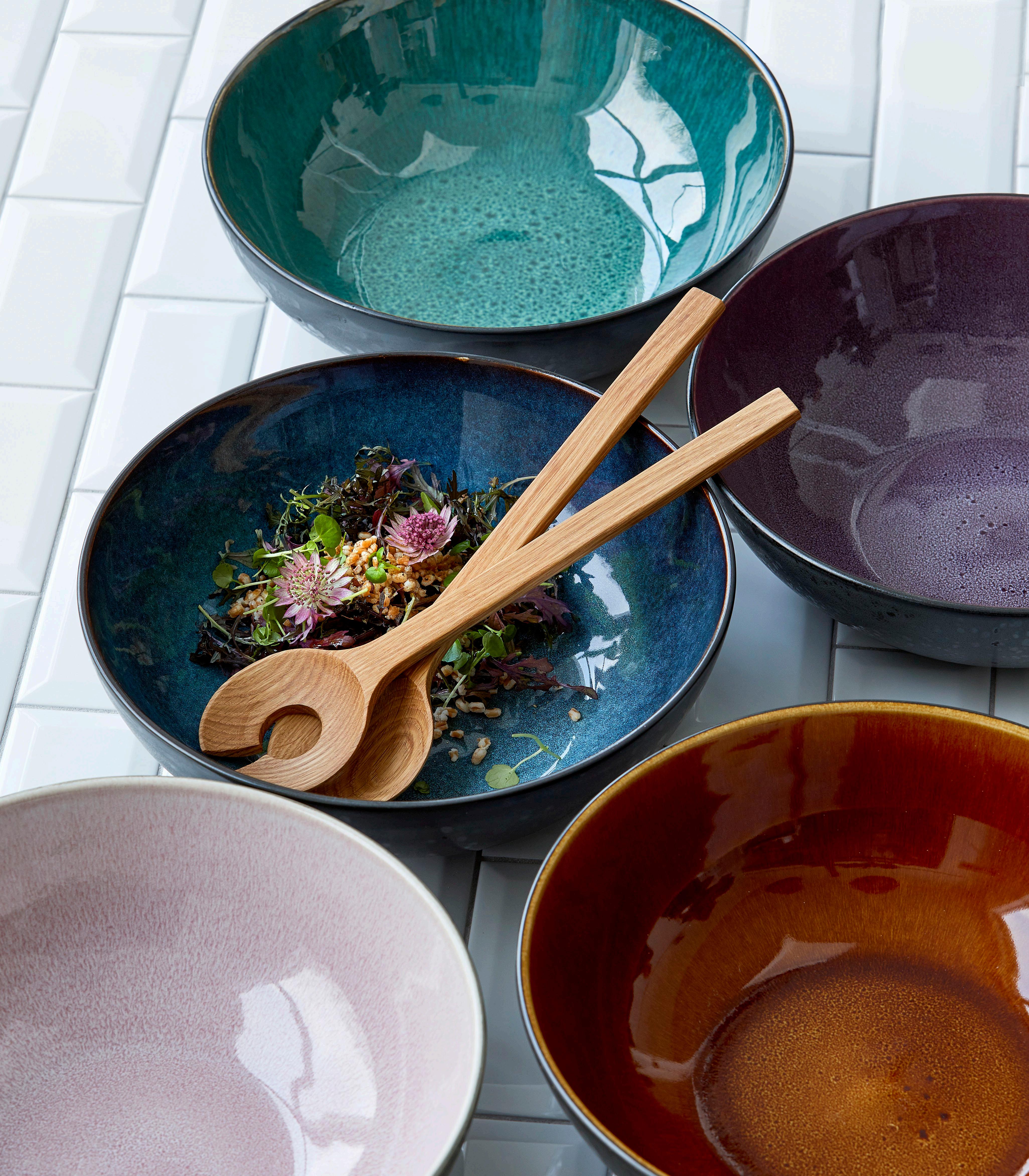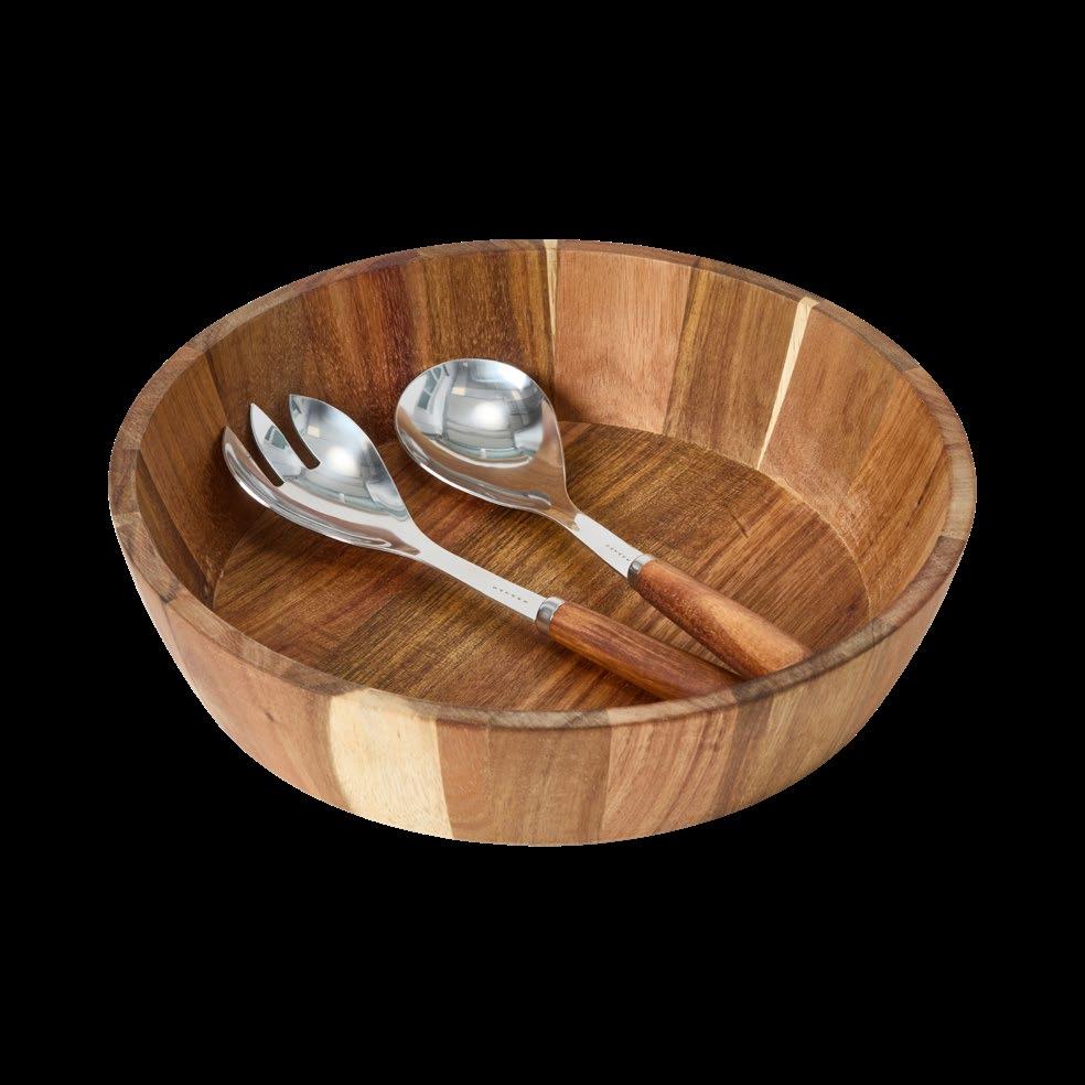 En rymlig salladsskål i vackert oljat akaciaträ som kombinerar naturlig och stram design med funktionalitet. Den breda, låga formen lyfter fram råvarorna och de matchande salladsbesticken gör serveringen komplett.