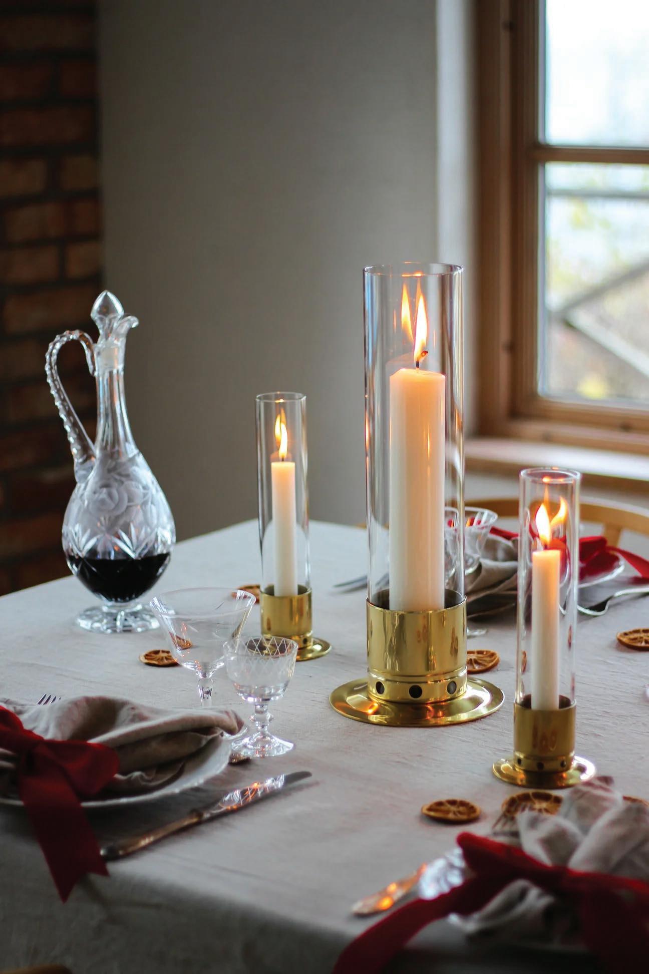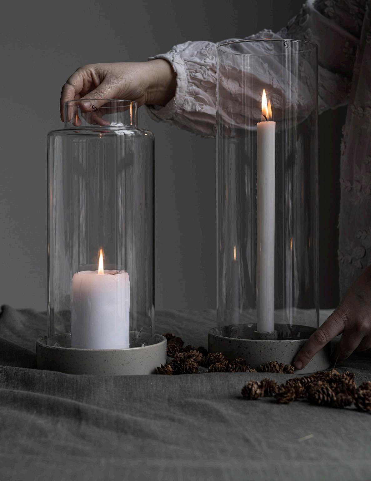 Med vackert stormglas som hindrar ljusen från att blåsa ut och minimerar risken för brand. Stabil och smidig fot håller ljusstaken stående även i hård vind och tar liten plats på bordet. Kan användas både inomhus och utomhus i olika miljöer – året runt. Passar standardljus 20-22cm och 23 mm.