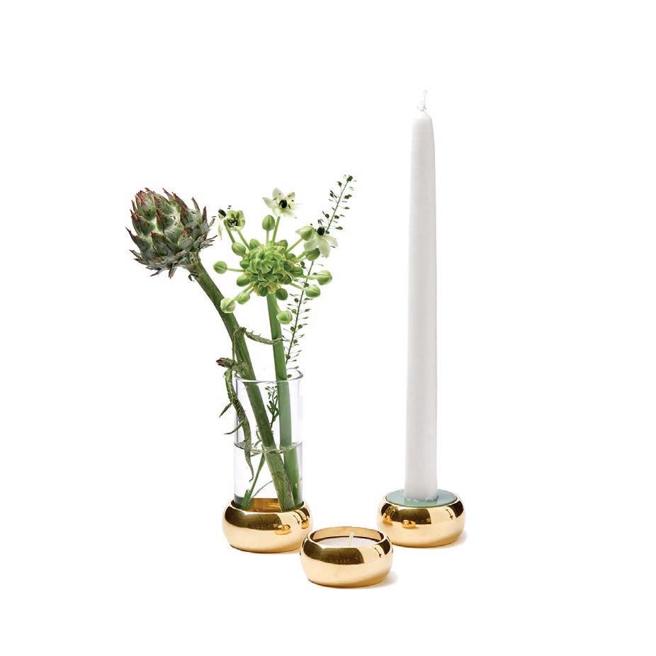 Presentförpackningen består av tre olika enheter som kan ordnas tillsammans som värmeljus, stearinljus och vas. Alla tre objekt har den klassiska Constella-basen antingen i aluminium eller mässing. Mått: Ø: 52 mm.