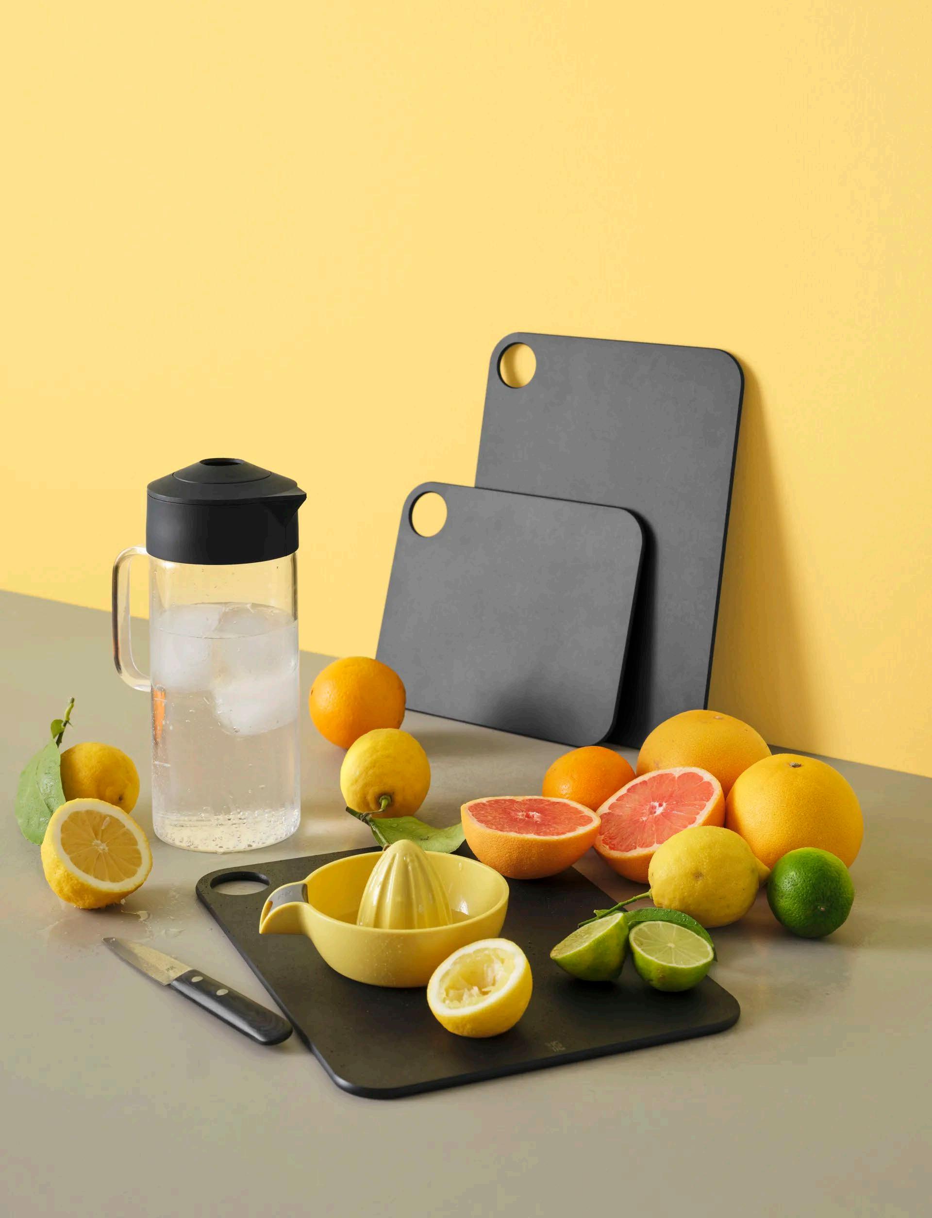 En stilren och funktionell skärbräda från Stelton, designad av Søren Refsgaard. Tillverkad av träfibrer som är antibakteriella, skonsamma mot knivar och tål maskindisk. Kan fräschas upp med sandpapper och olja, och klarar upp till 170°C. Med rundade hörn och upphängningshål blir den både praktisk och dekorativ i köket. Storlek 23,3x18,7 och 31,1x23,5.