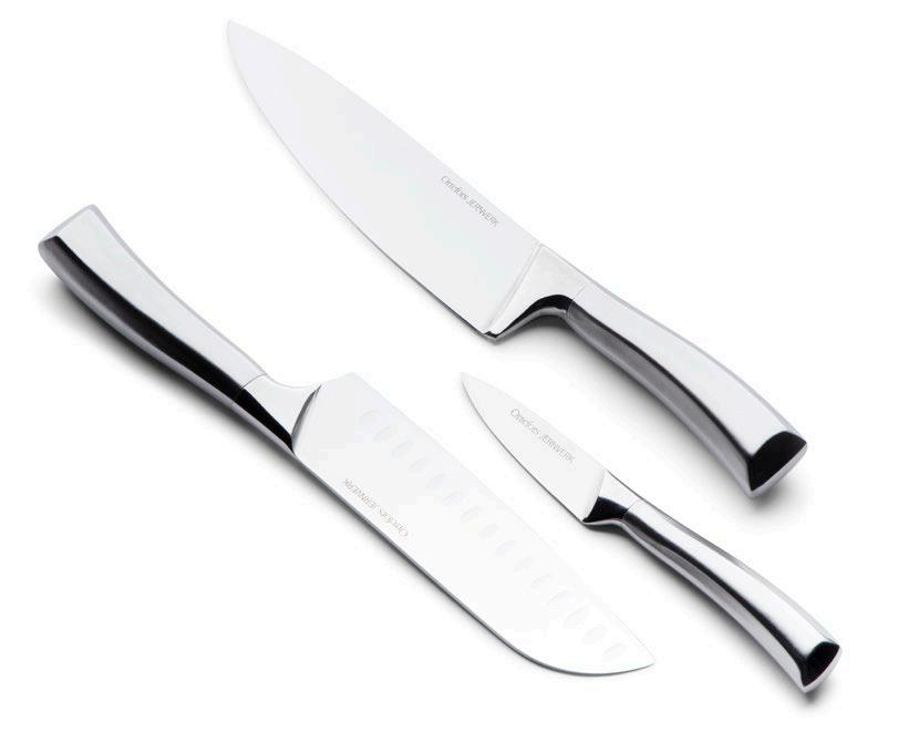 Ett mångsidigt och stilrent knivset i stål som täcker alla kökets behov. Setet innehåller en skalkniv, en kockkniv samt en santokukniv, den japanska allroundkniven som gör det enkelt att skiva, hacka och tärna med hög precision.Tillsammans ger de tre knivarna dig rätt verktyg för allt från vardagsmatlagning till festmiddagar, och blir en självklar bas i varje kök.