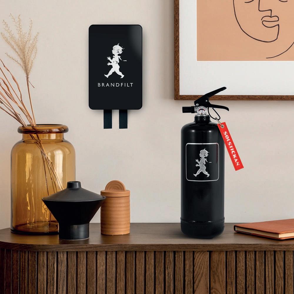 Låt brandfilten bli en del av det säkra hemmet! Brandfilt i stilfull stållåda med prägling av den klassiska Solstickepojken. Brandfilten rekommenderas som komplement till en brandsläckare i alla hem. Brandfilten är tillverkad av glasfiber och klarar temperaturer uppemot med tydliga instruktioner för