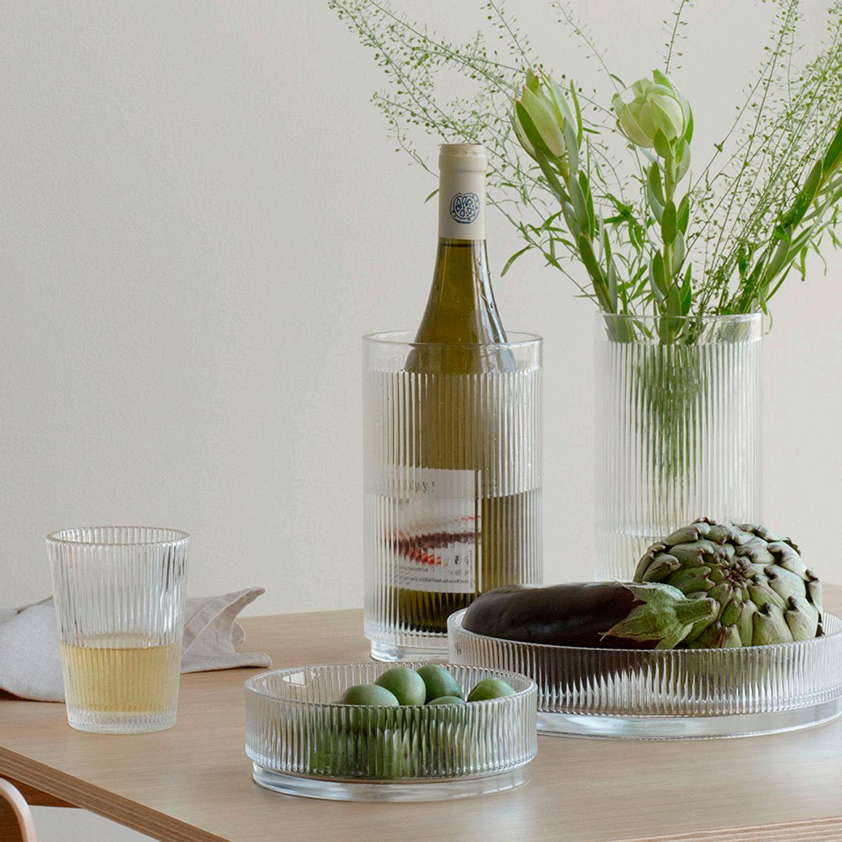Det räfflade tapassetet Pilastro från Stelton består av tre skålar och ett fat som passar perfekt när du vill bjuda dina favoriter på lyxiga tapas. Setets design är inspirerad av den eleganta art déco-stilen från 1920-talet, enkelt kan matchas med andra serviser och passar väl in i alla hem.