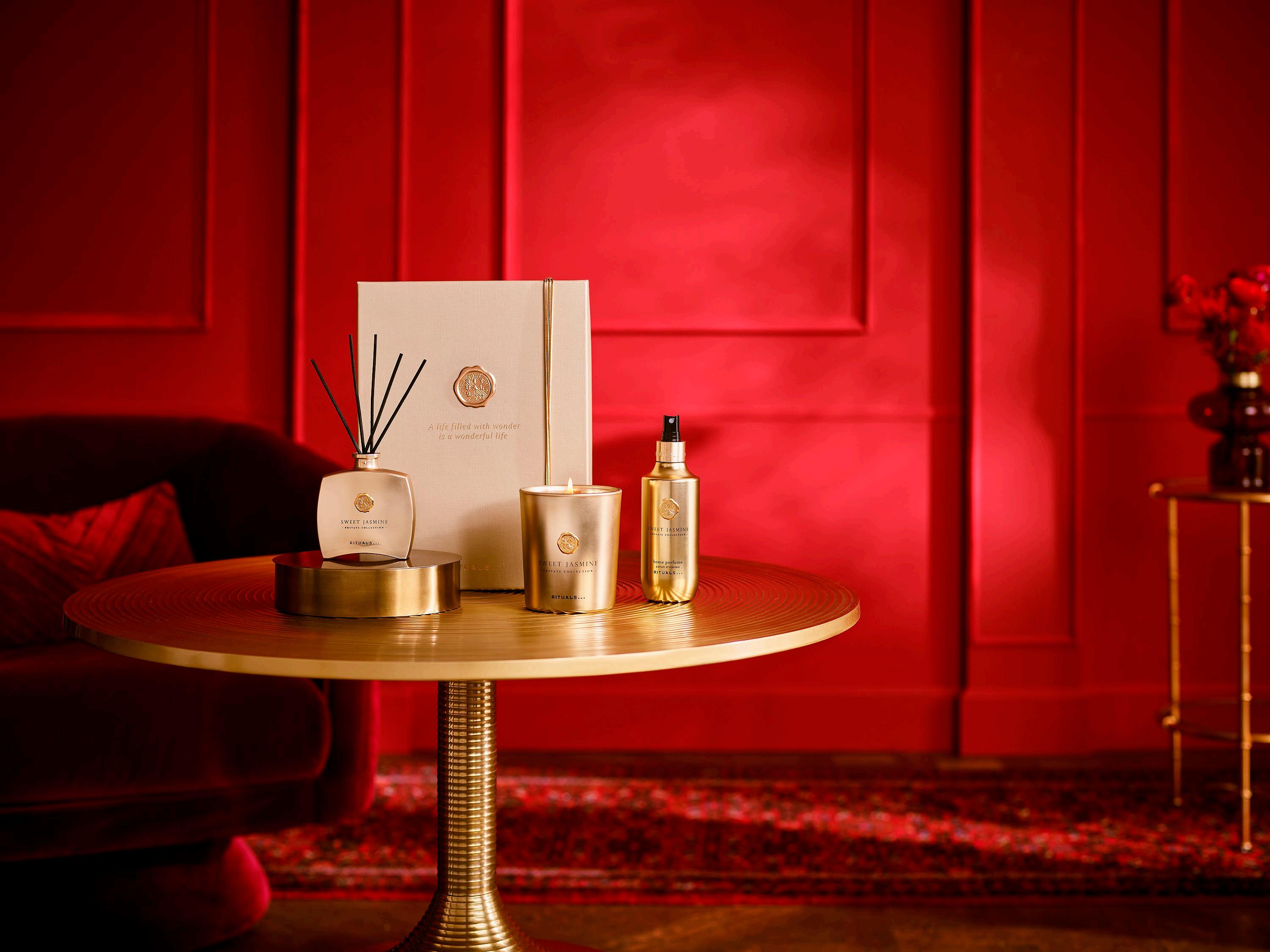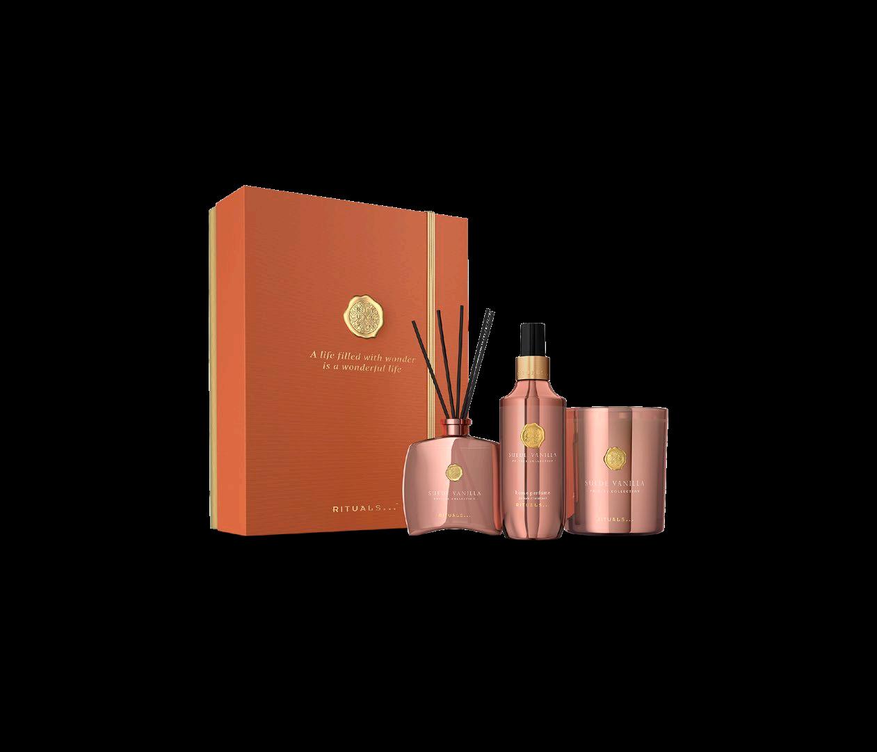 Ett paket innehållandes ett elegant doftljus, ett stilrent tändsticksrör i plåt och en dekorativ och smart förvaringslåda för värmeljus. Lådan har plats för 100 stycken värmeljus. Levereras i en lyxigt presentförpackning.