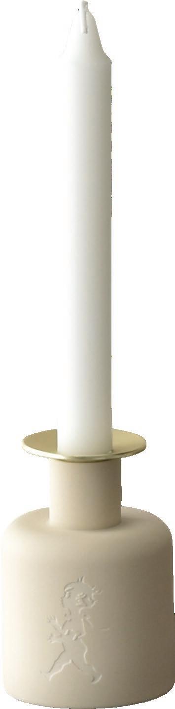 Doftljuset i keramik sprider en behaglig atmosfär och blir en vacker inredningsdetalj, även efter att ljuset brunnit ut. Ljusstaken i keramik har en tidlös design och kompletteras med en guldfärgad manschett som skyddar underlaget.