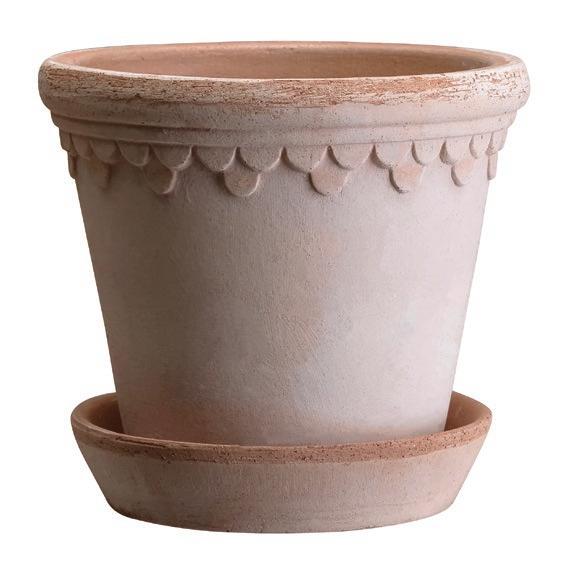 Kruka Köpenhamn 18 cm från Bergs Potter är en handgjord, frosttålig lerkruka i italiensk premiumlera. Leran låter rötterna andas och bevarar fukten, medan det silikonbehandlade fatet gör krukan helt vattentät, perfekt både inne och ute. Designen är inspirerad av en 1800-talskruka från Fredriksborgs slott och tillverkas idag i Toscana. Ø18 cm.