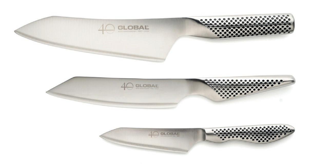Det här knivsetet är framtaget inför Globals 40-årsjubileum och finns endast i begränsad utgåva. Setet består av en kiritsuke på 15 cm, en kockkniv på 18 cm och en allkniv på 11 cm. Vid köp av detta set får man även en specialdesignad knivslip på köpet till ett värde av 559:-.