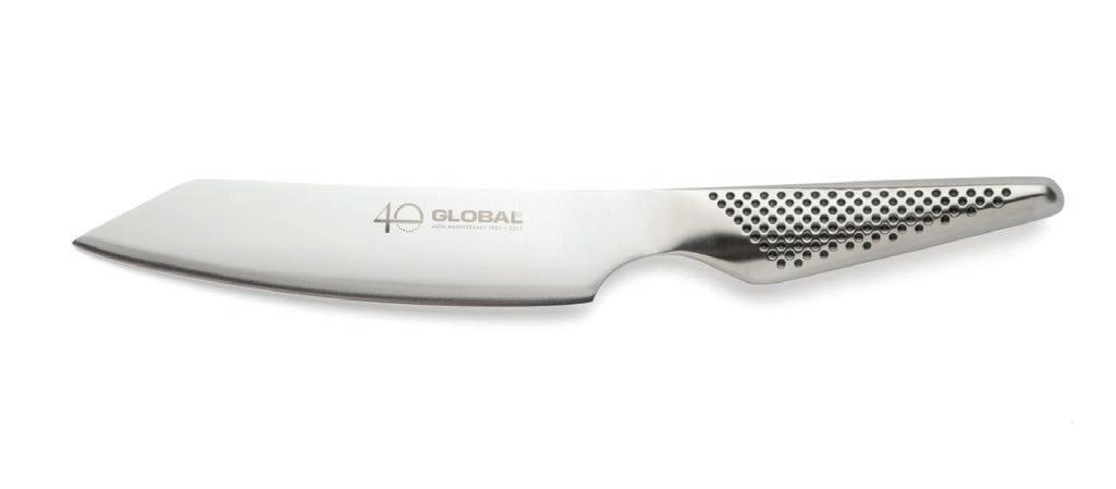 Den här kniven är framtagen inför Globals 40-årsjubileum och finns endast i begränsad utgåva. Det är en japansk kiritsuke på 15 cm. Du kan använda kniven till de flesta råvaror och uppgifter i köket.