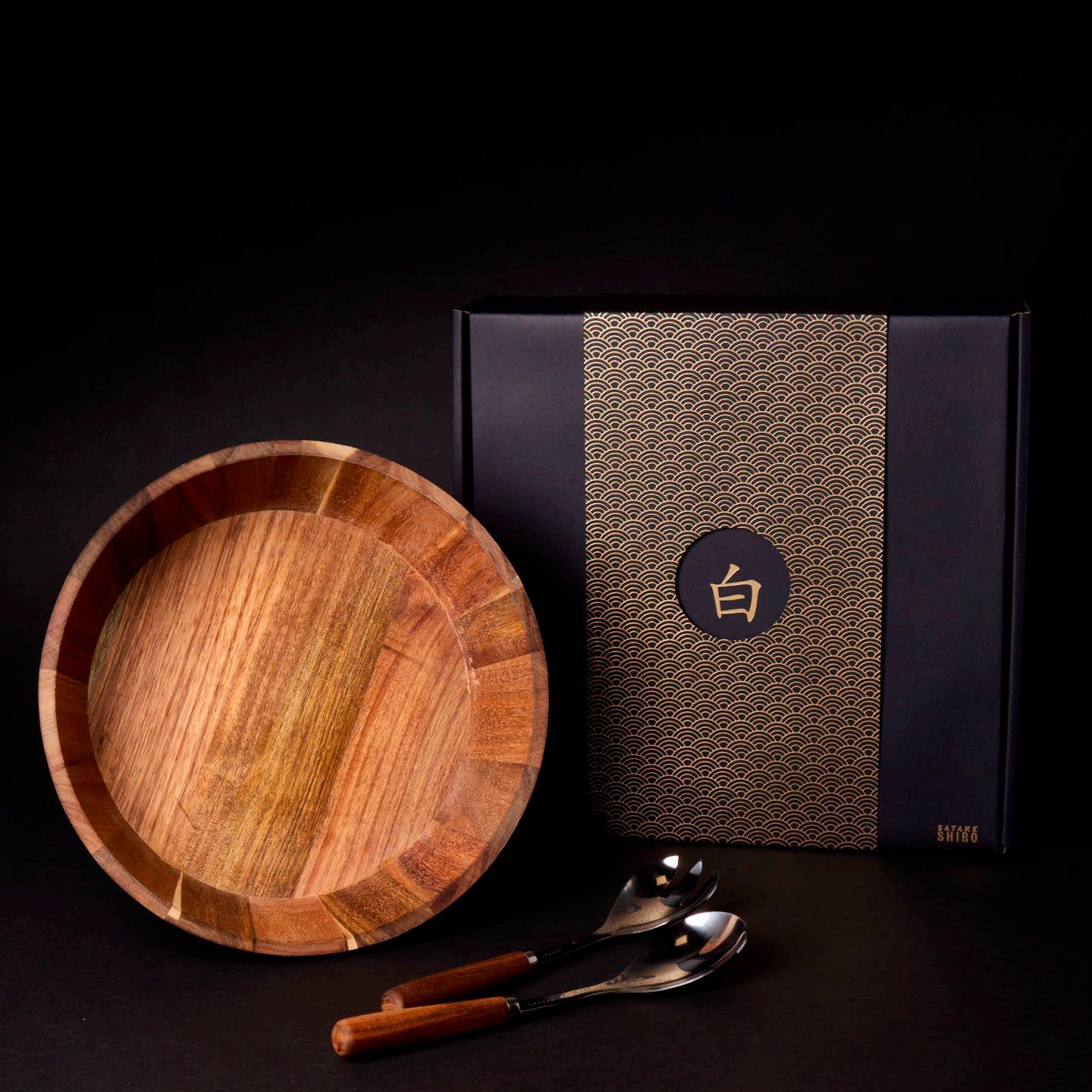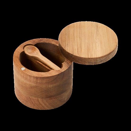 I detta setet får du det innovativa grytunderlägget från satakes serie Shiro som består av två svarta trädelar med inbyggda magneter. Samt en liten kryddburk av akaciaträ. Burken har ett delat förvaringsfack där du kan erbjuda både salt och peppar separat i en och samma burk.
