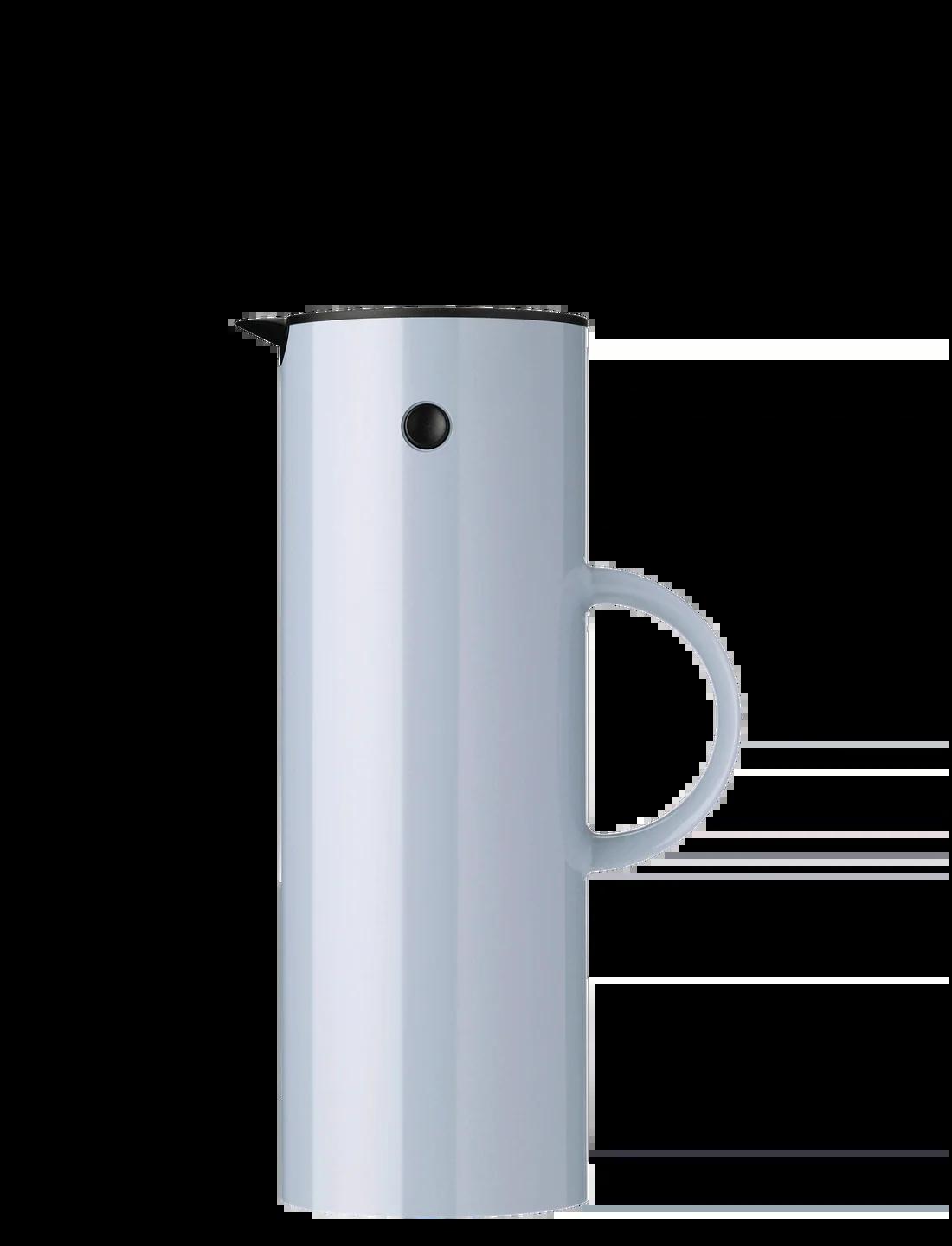 Stelton termoskanna EM77 är en ikonisk dansk termoskanna, formgiven av Erik Magnussen år 1977 och produceras av det danska varumärket Stelton. Termoskannan rymmer en liter och är perfekt för kaffe eller te tack vare den isolerande glasinsatsen som håller vätskan varm flera timmar. Väljer du att fylla termosen med kall vätska, exempelvis iste, fungerar det givetvis lika bra och håller temperaturen.