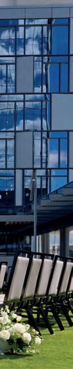 Guestscanenjoyarooftoppoolandbar,on-sitedining,and astunningcuratedartcollection.HALLParkHotelfeatures 224beautifullydesignedroomsand60luxurysuites,each withaprivatebalconyandfull-kitchenette.