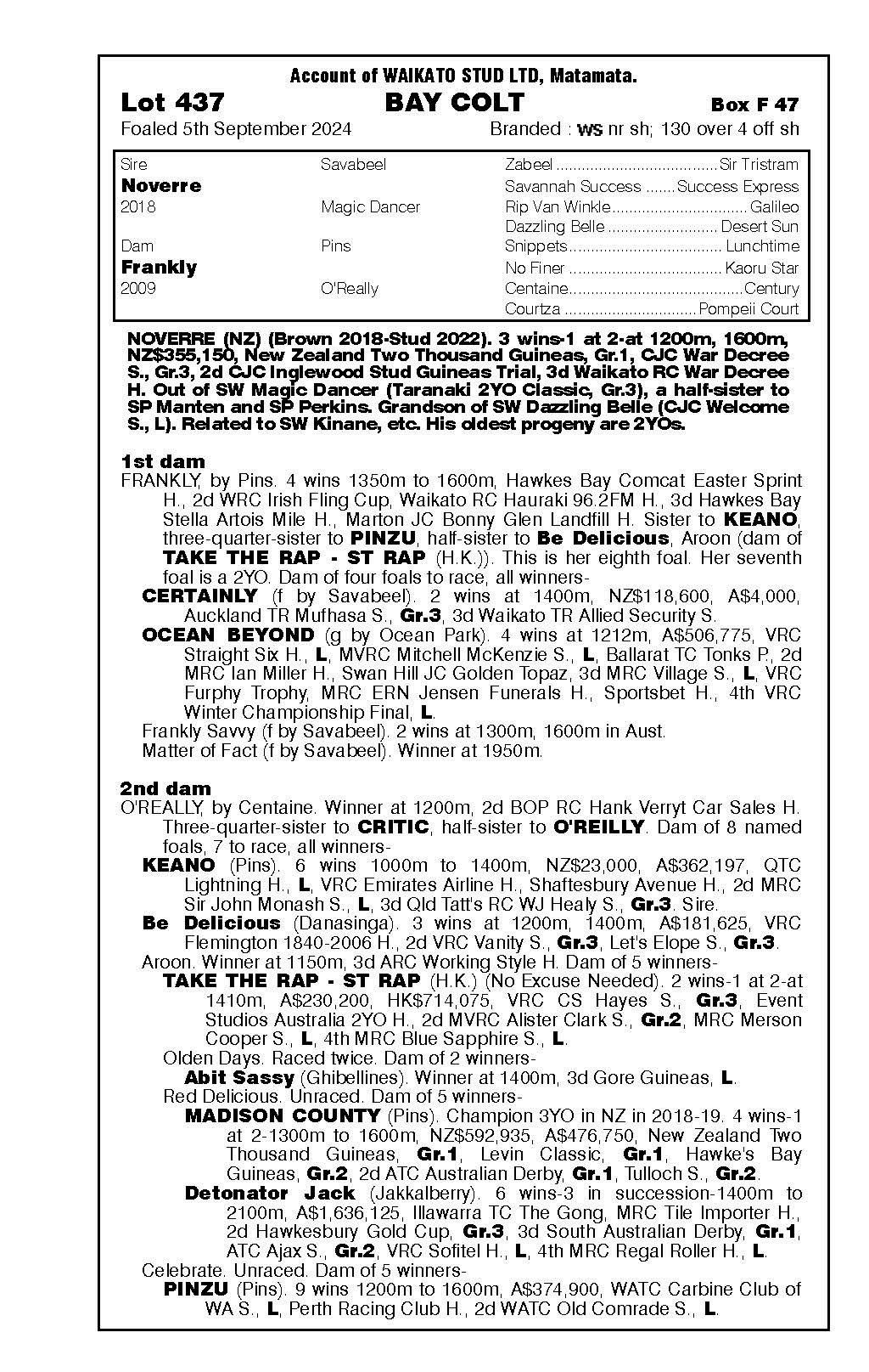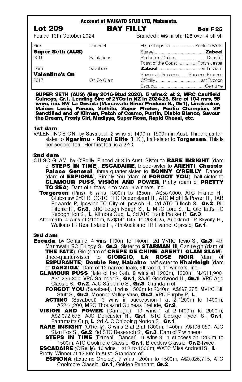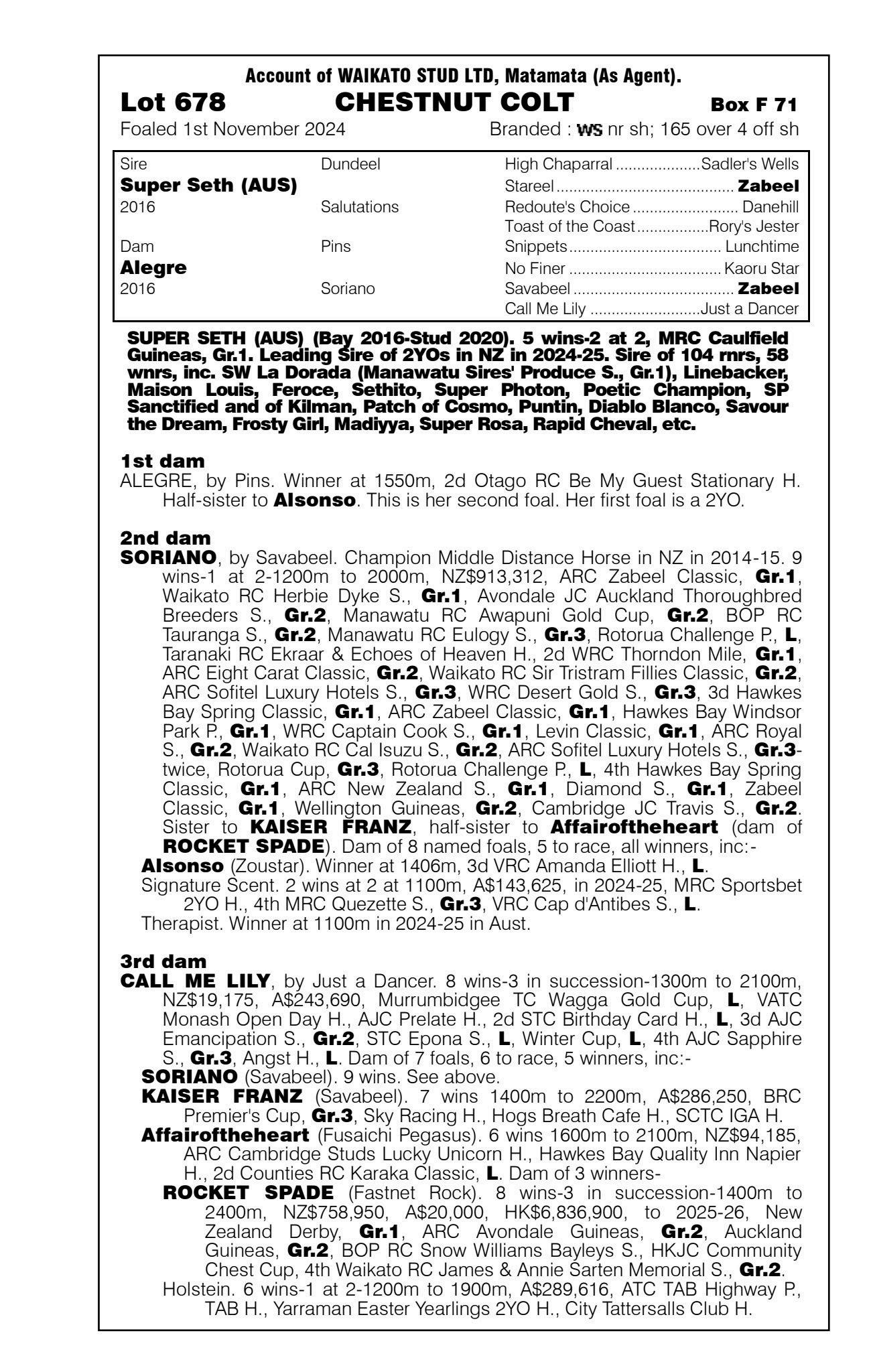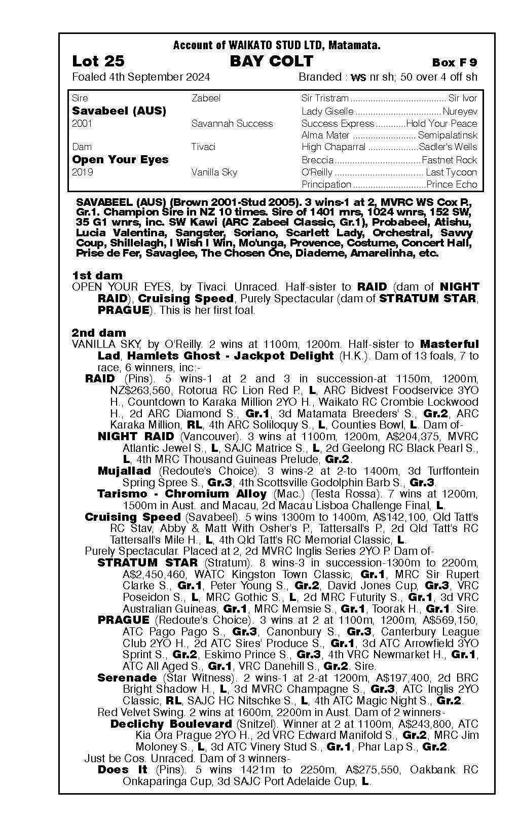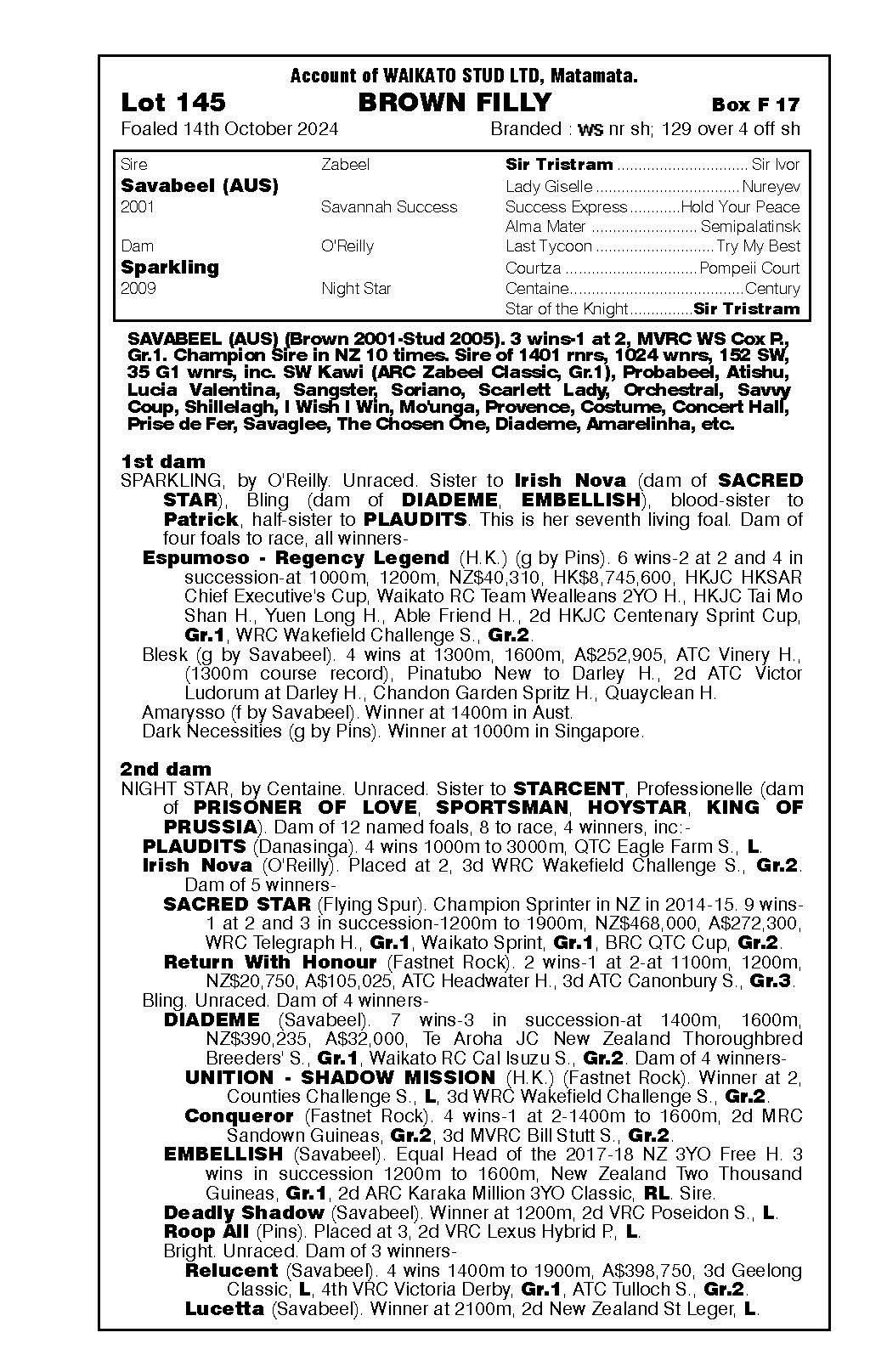 official ownership Waikato Stud 50% Del Mar Bloodstock (Gary Wallace) 50%