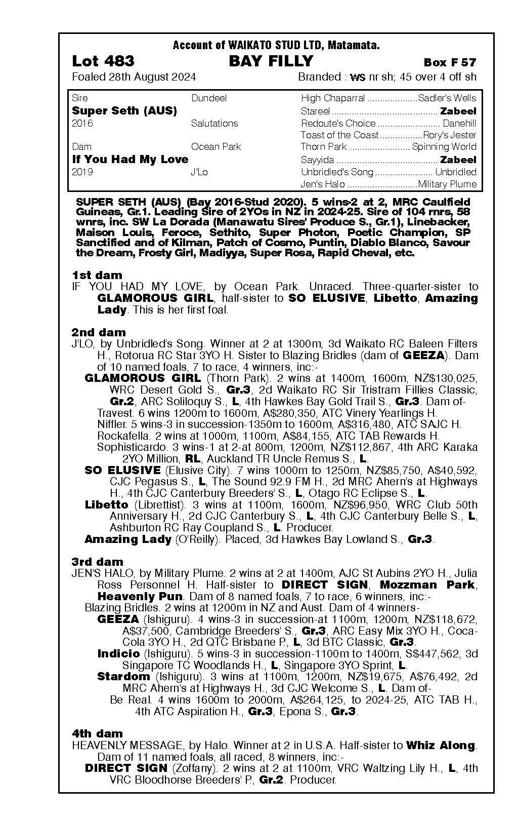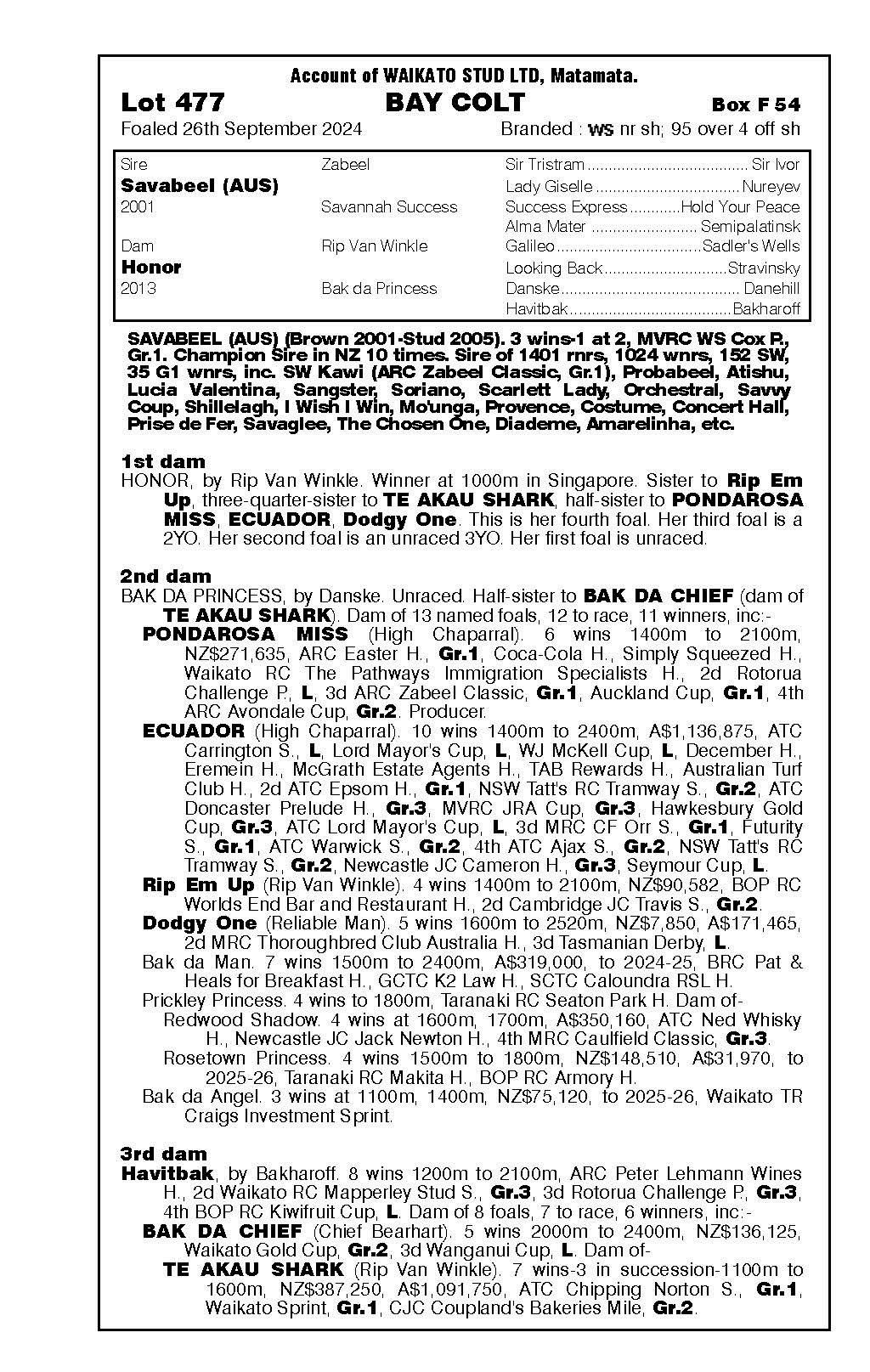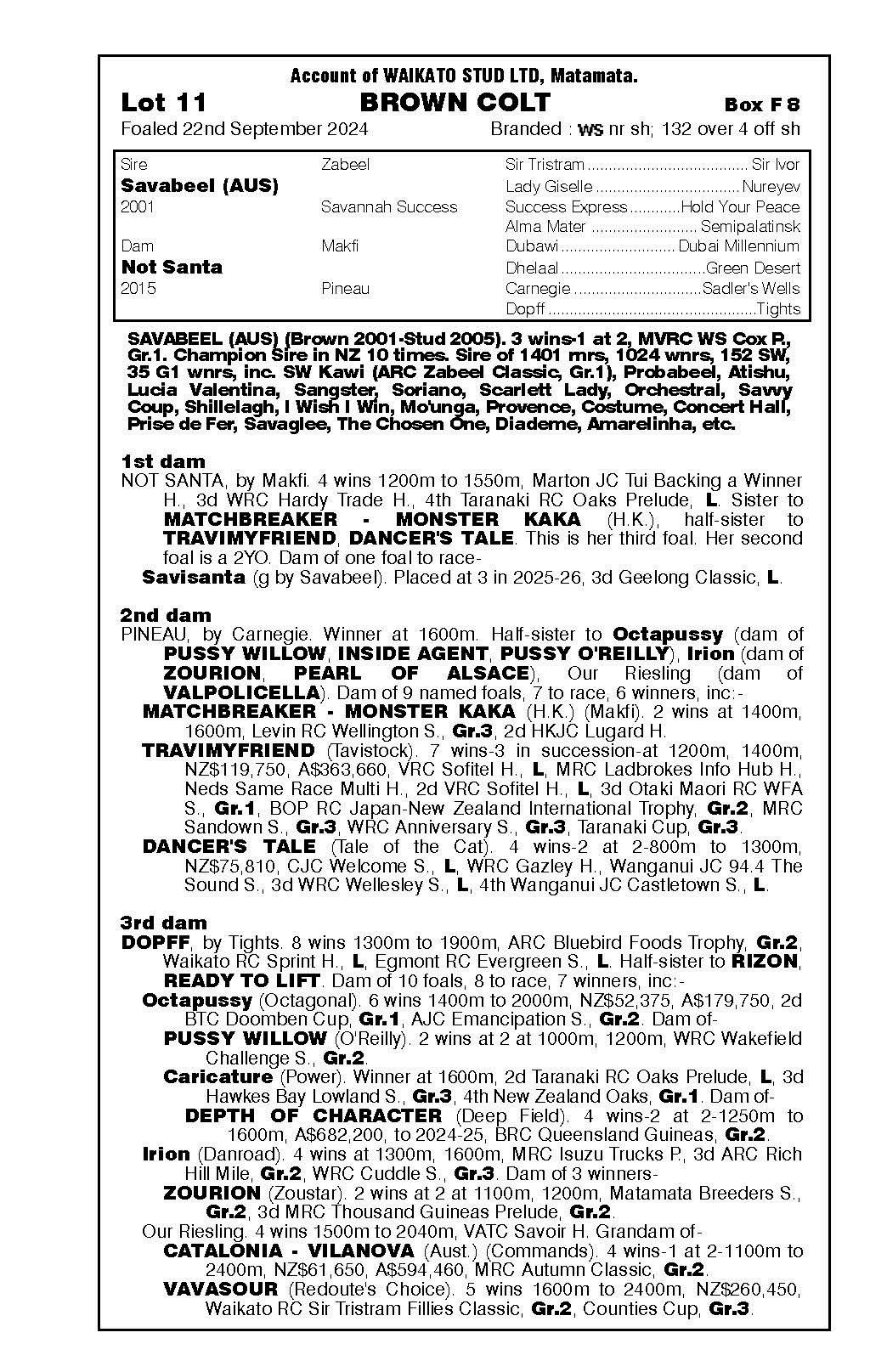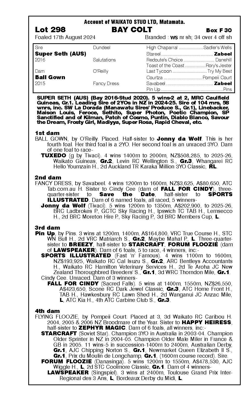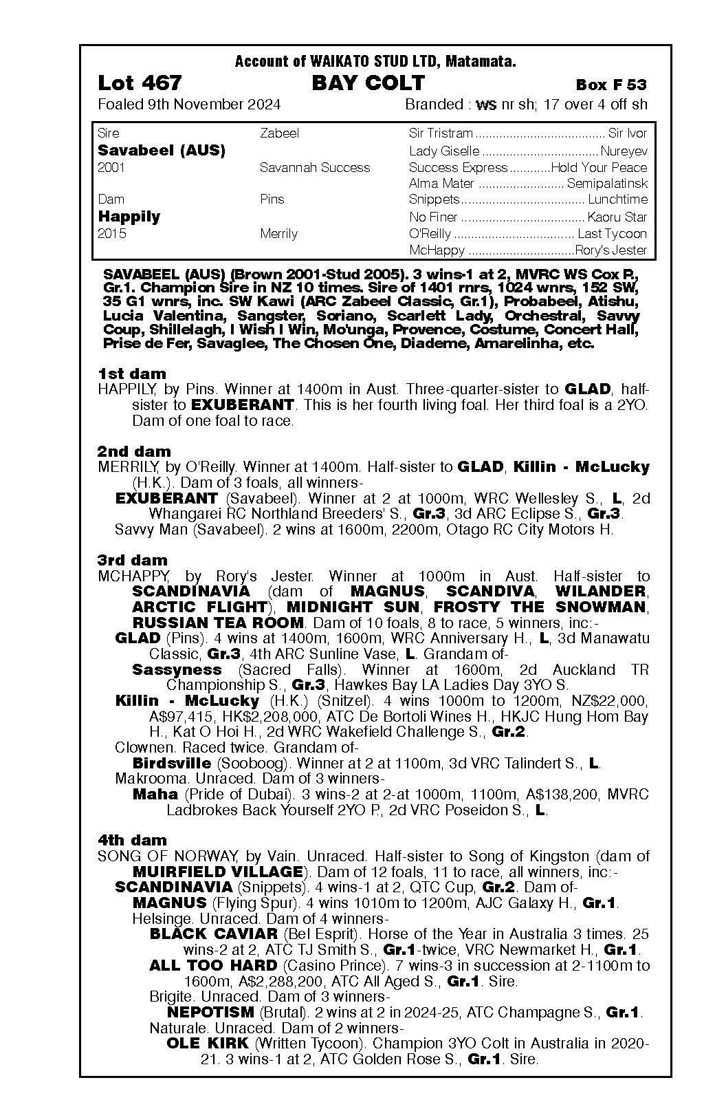 official ownership Waikato Stud 50% Del Mar Bloodstock (Gary Wallace) 50%