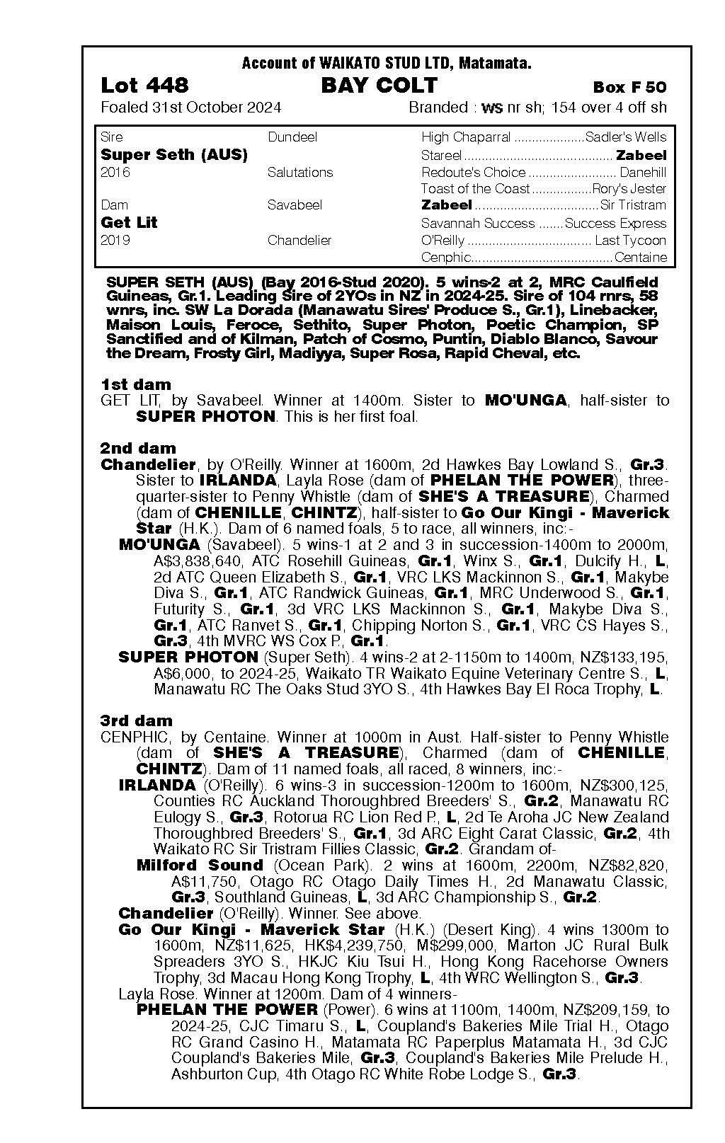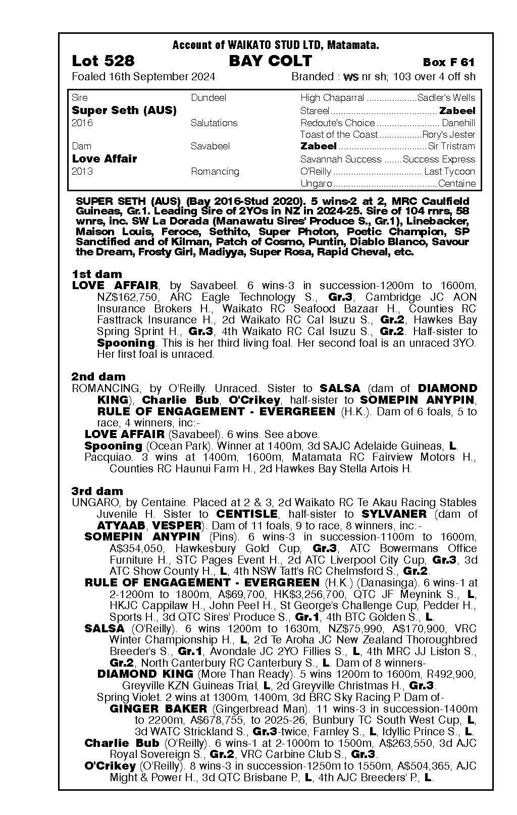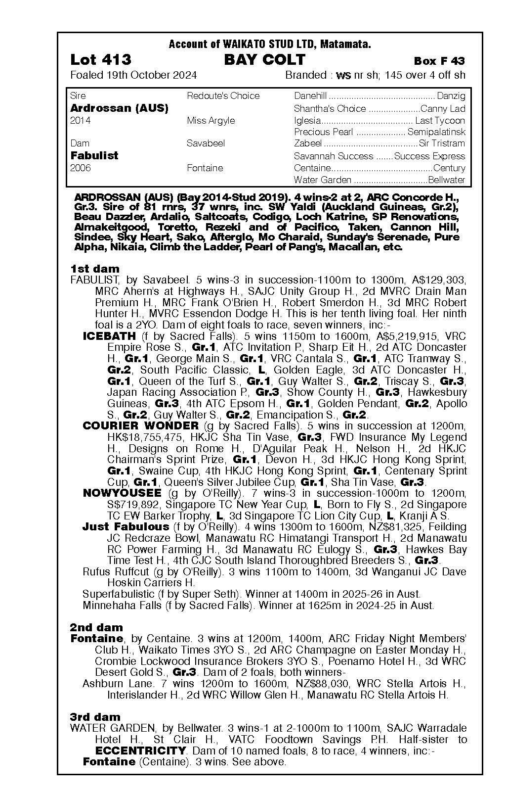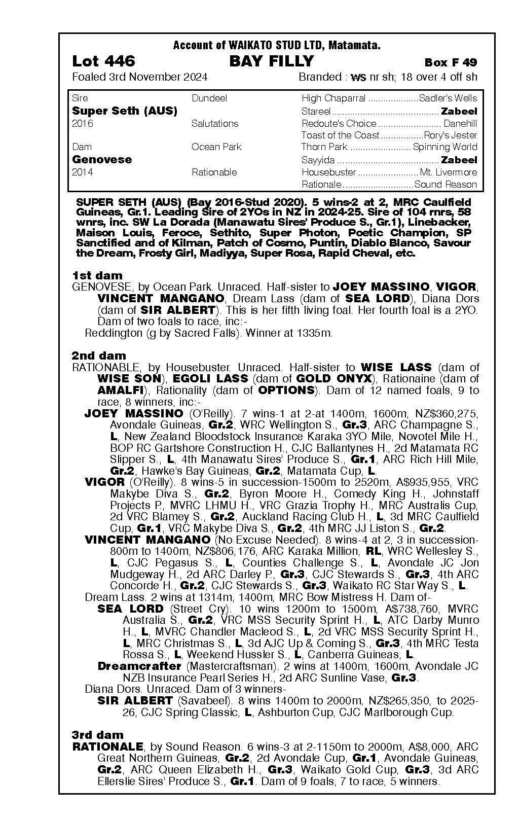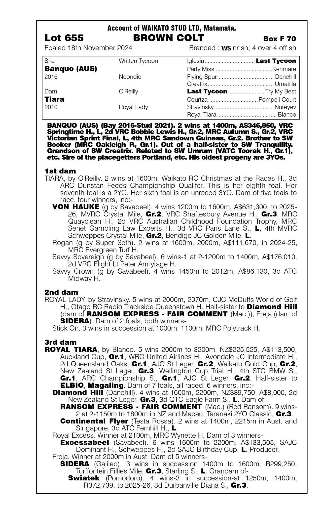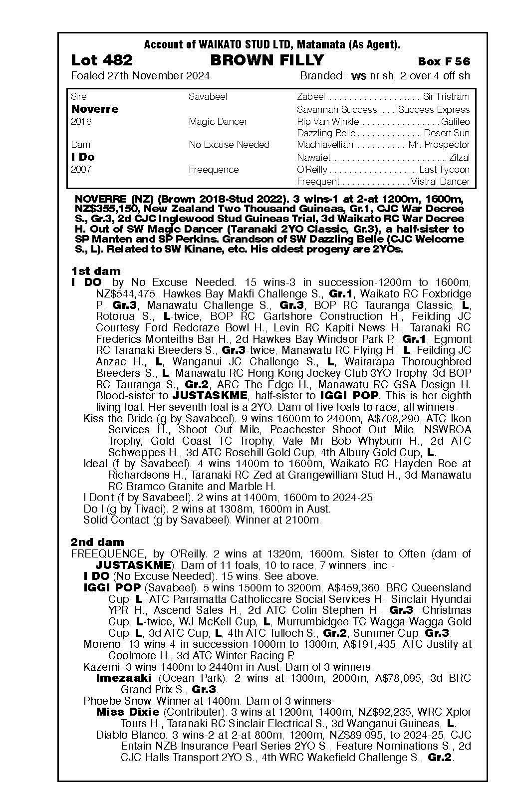 official ownership Waikato Stud 50% Del Mar Bloodstock (Gary Wallace) 50%