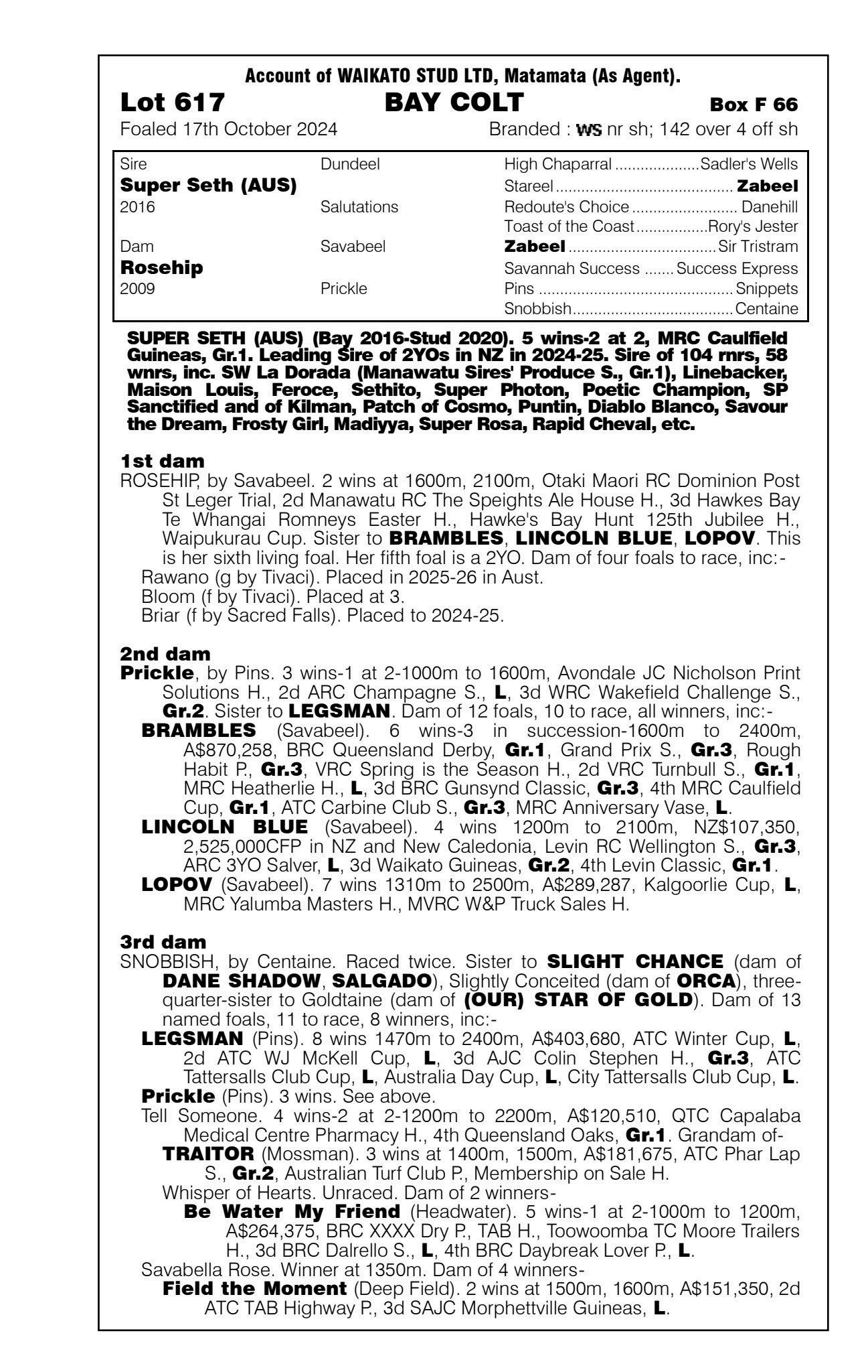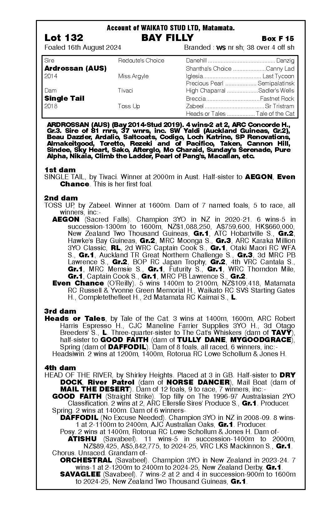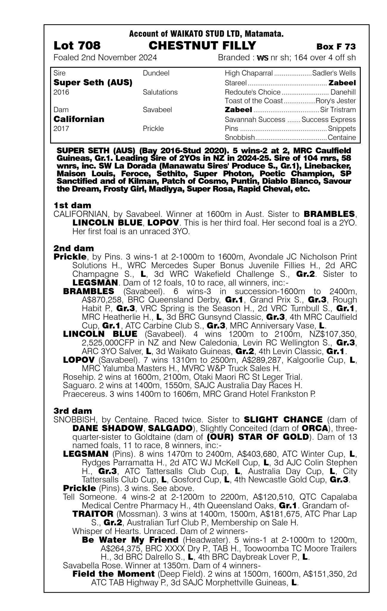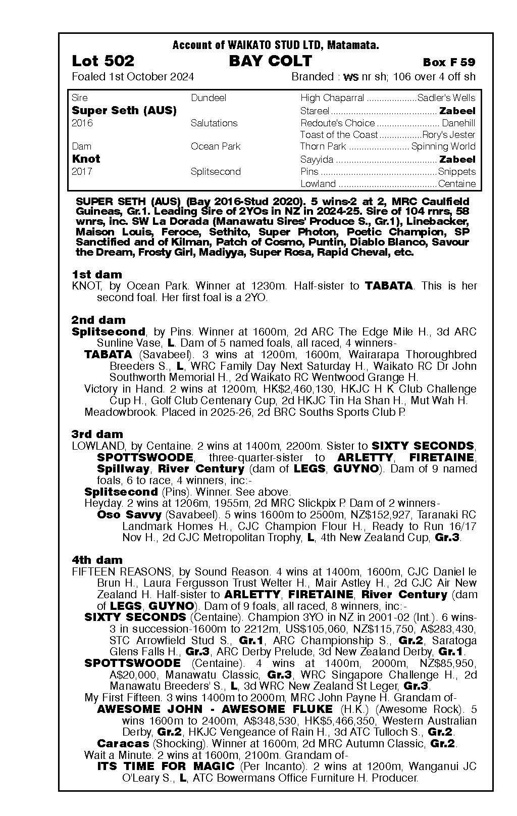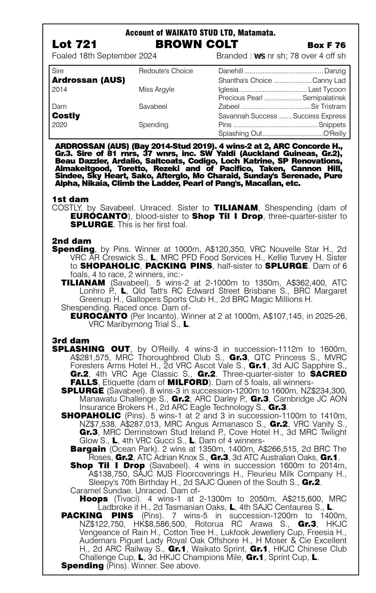official ownership Waikato Stud 50% Del Mar Bloodstock (Gary Wallace) 50%