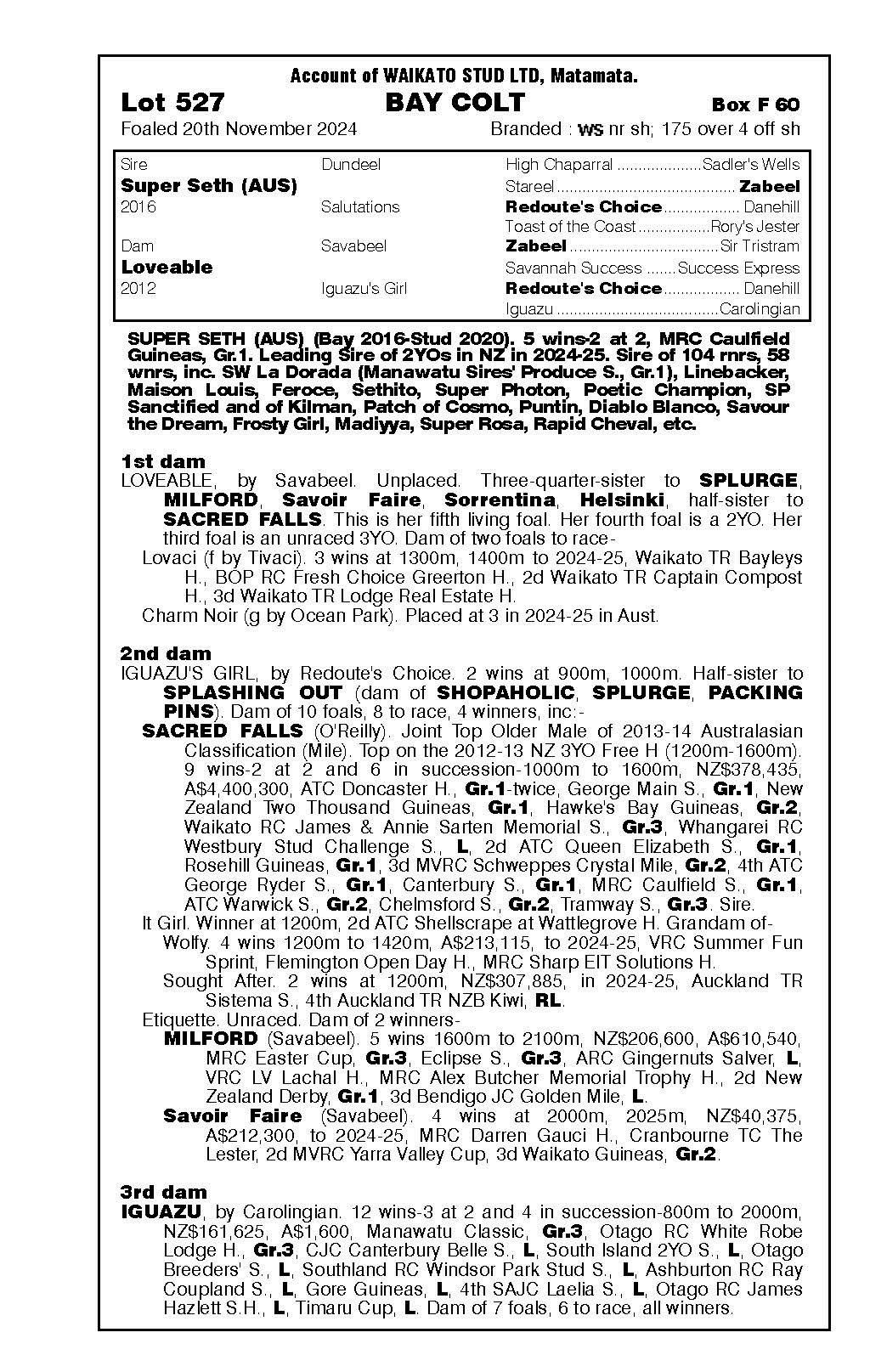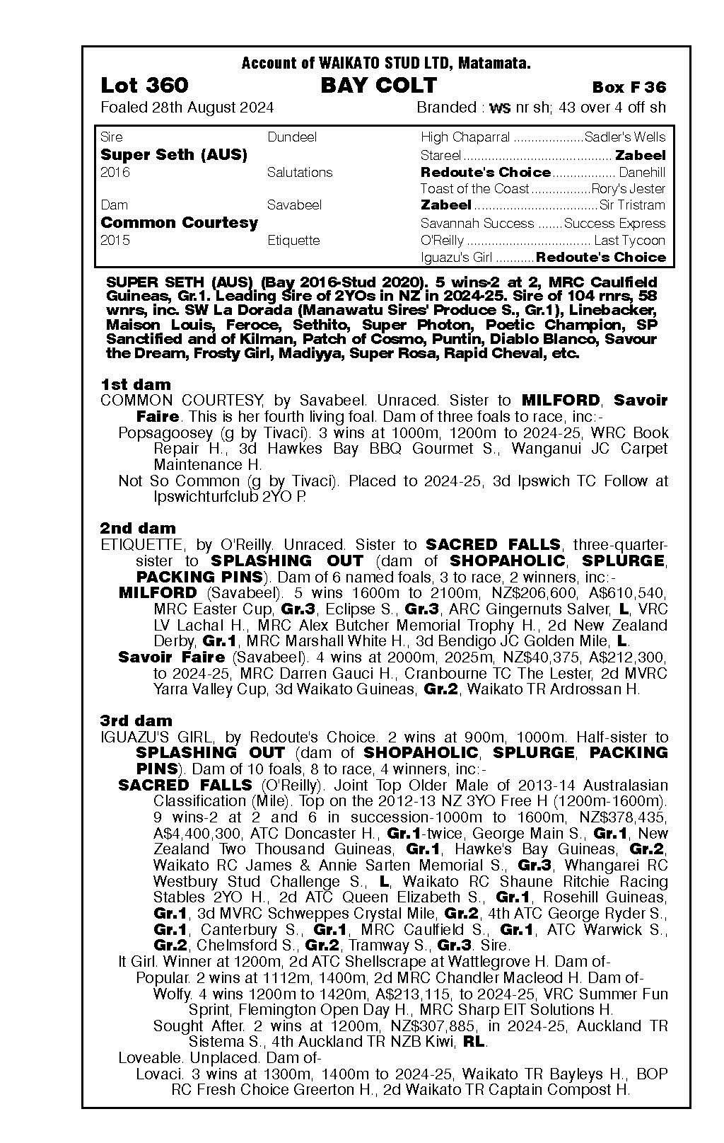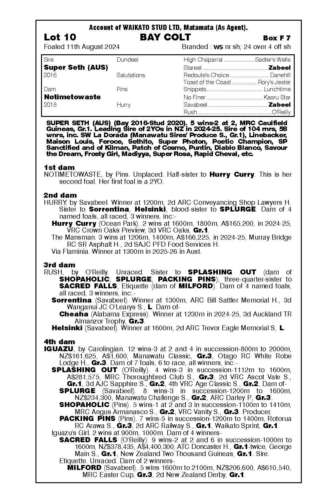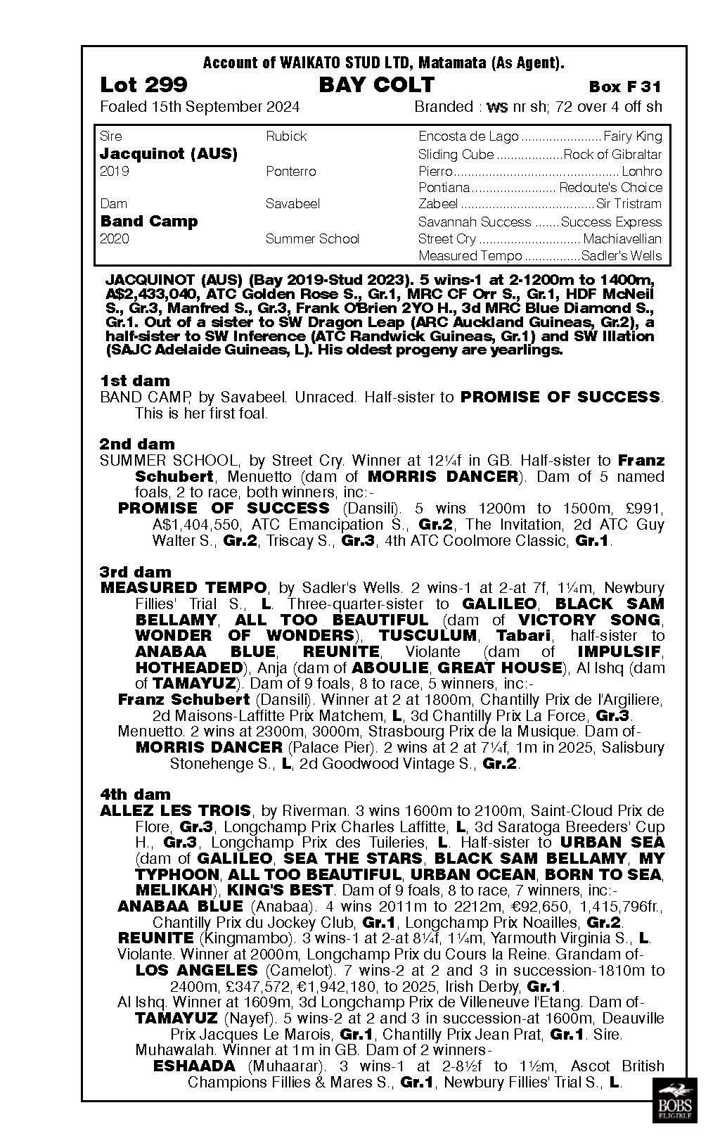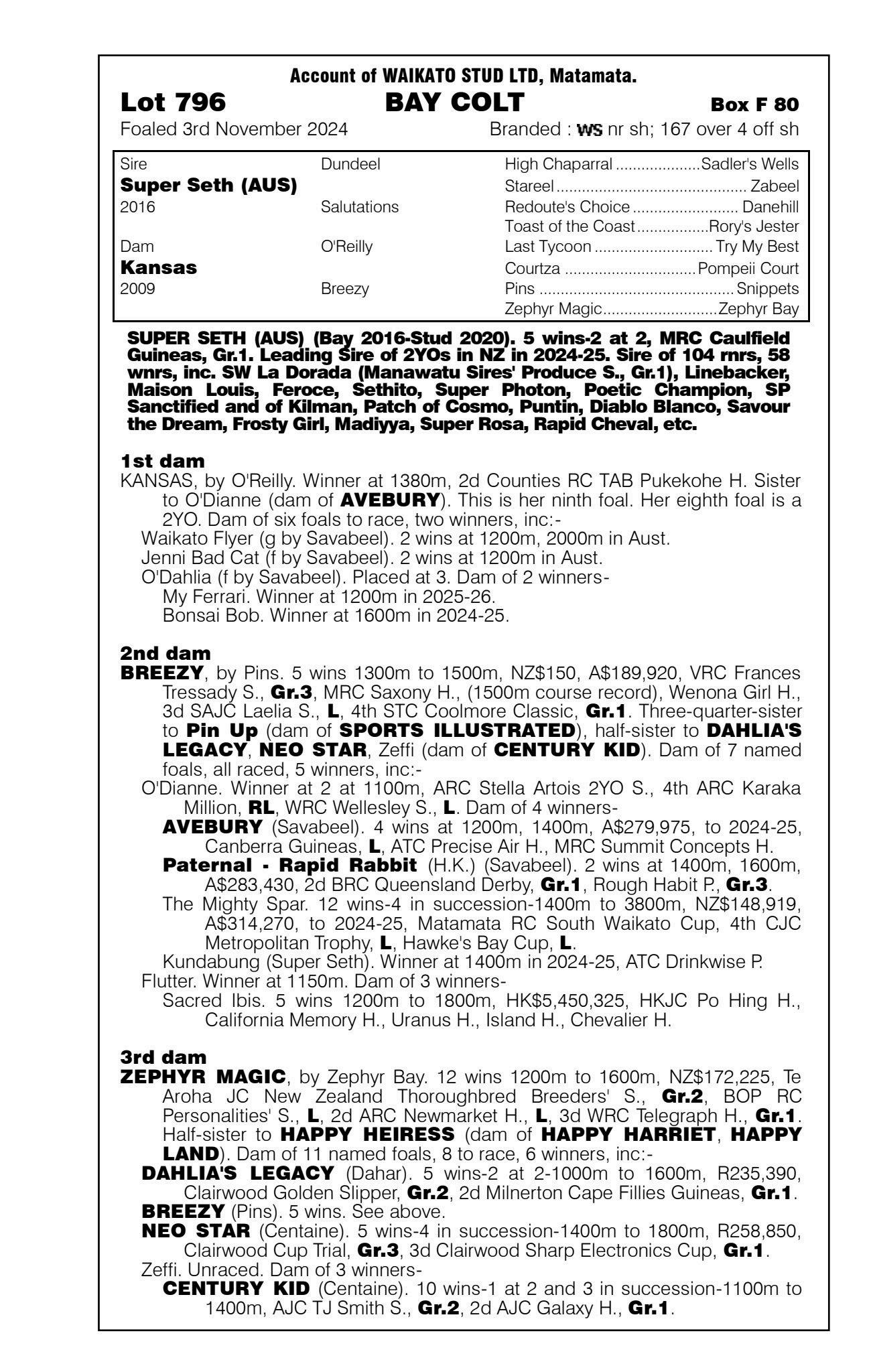 official ownership Waikato Stud 50% Del Mar Bloodstock (Gary Wallace) 50%