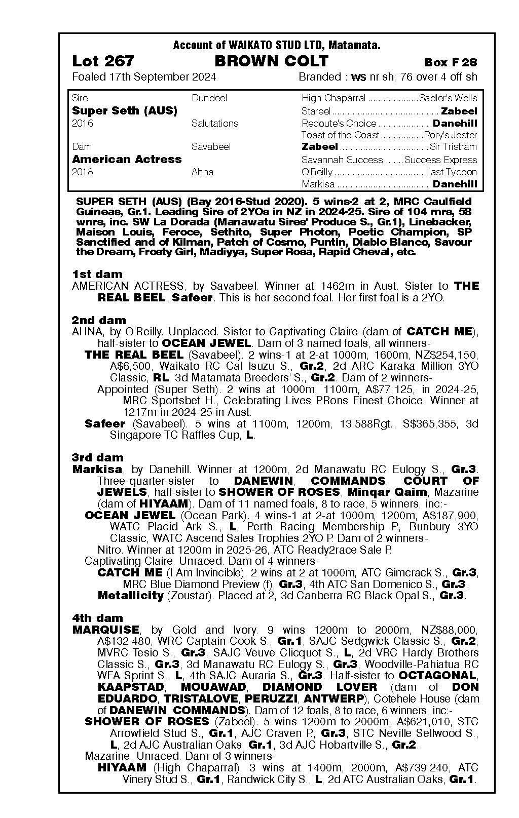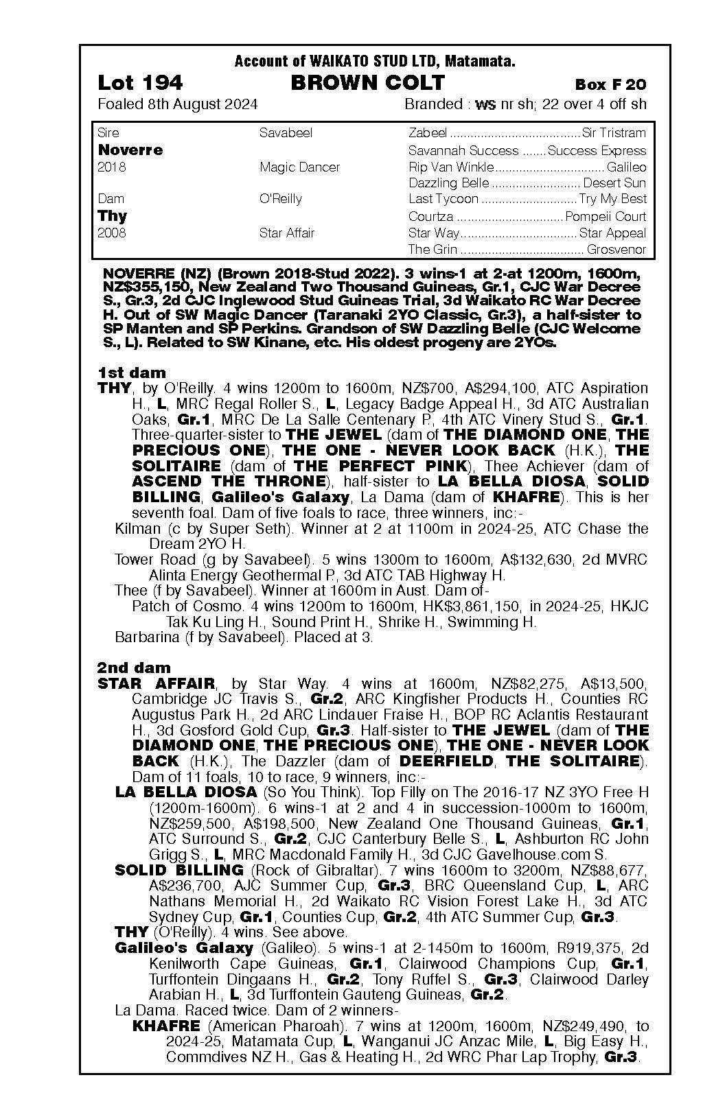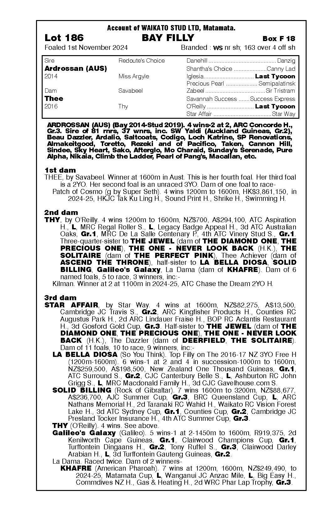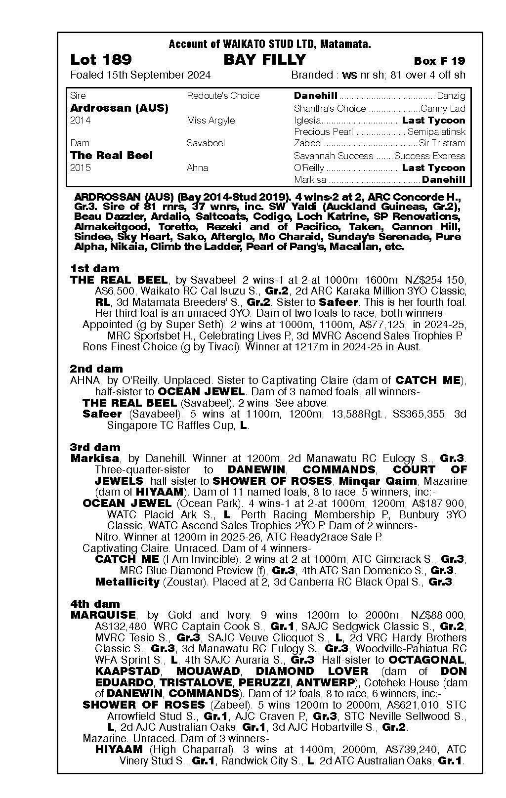 3rd - Unnamed (2g, Ardrossan) Sold $40k ‘25 NZB R2R to Tan Sri Richard Cham 4th - yearling filly by Noverre 5th - filly foal by Noverre