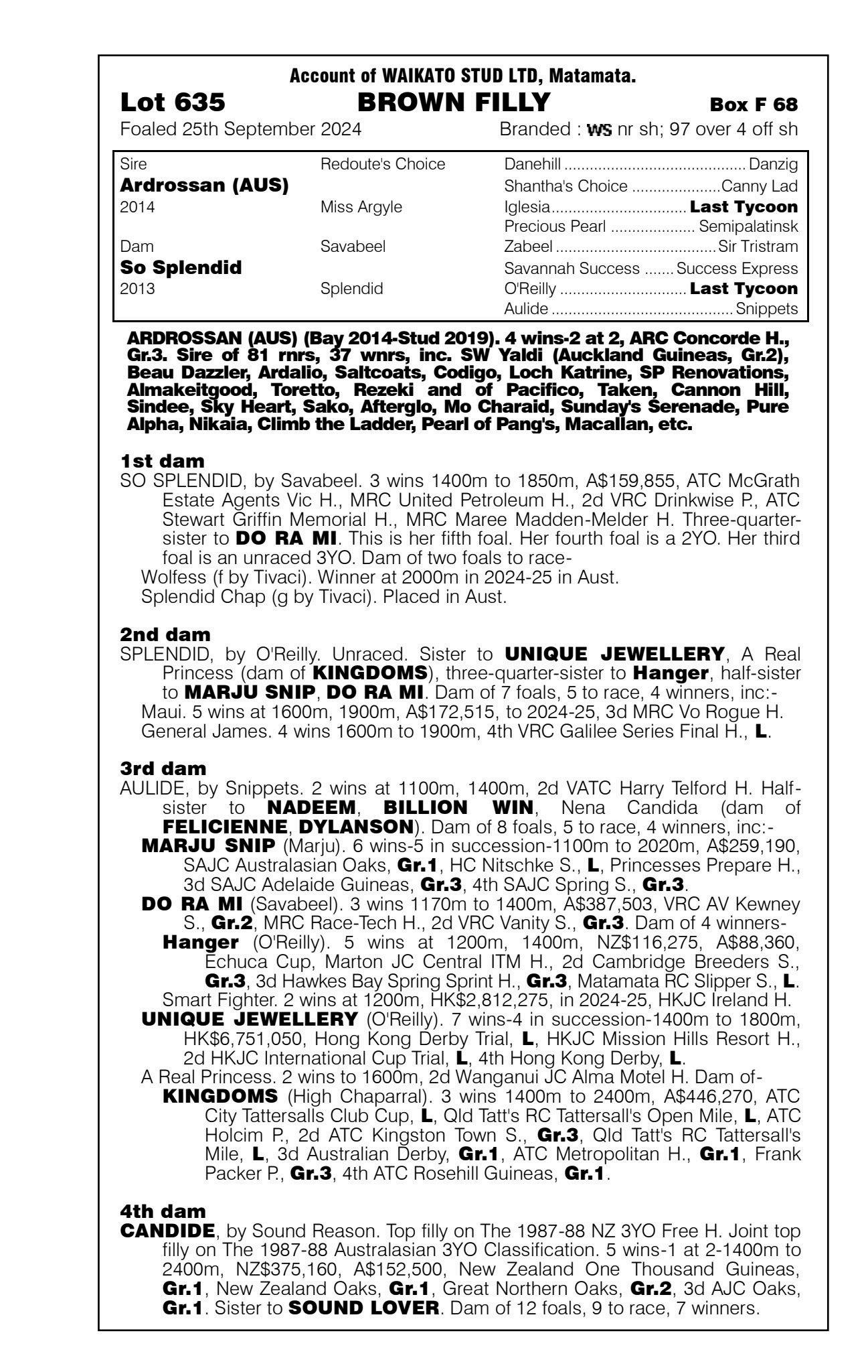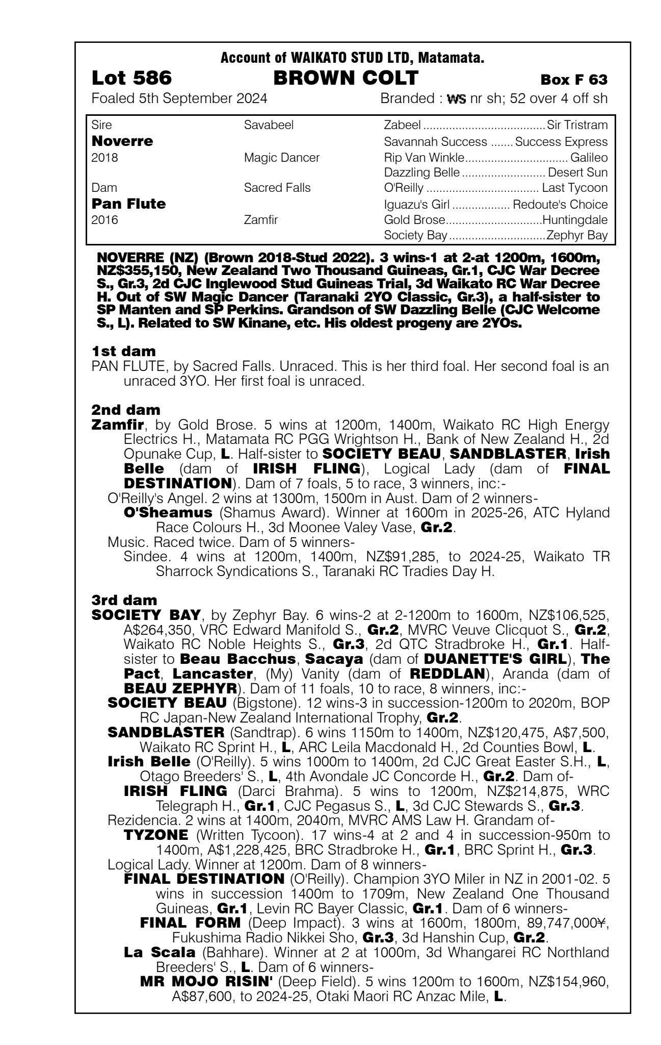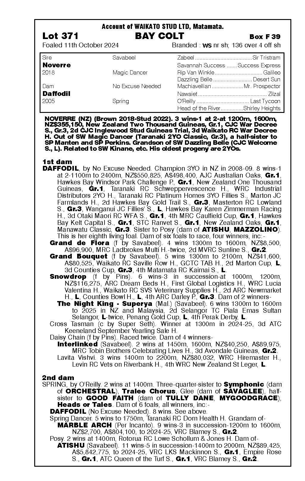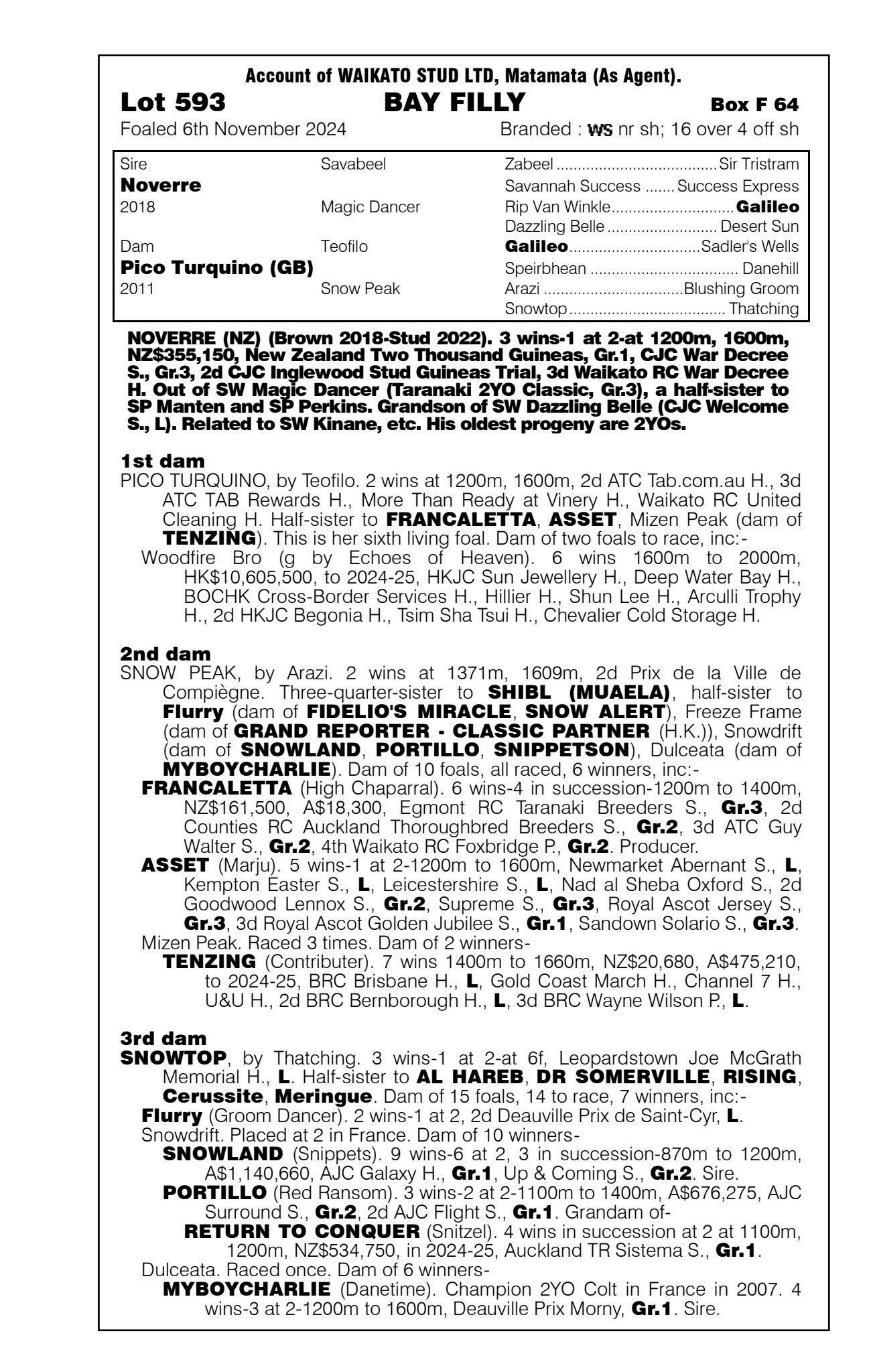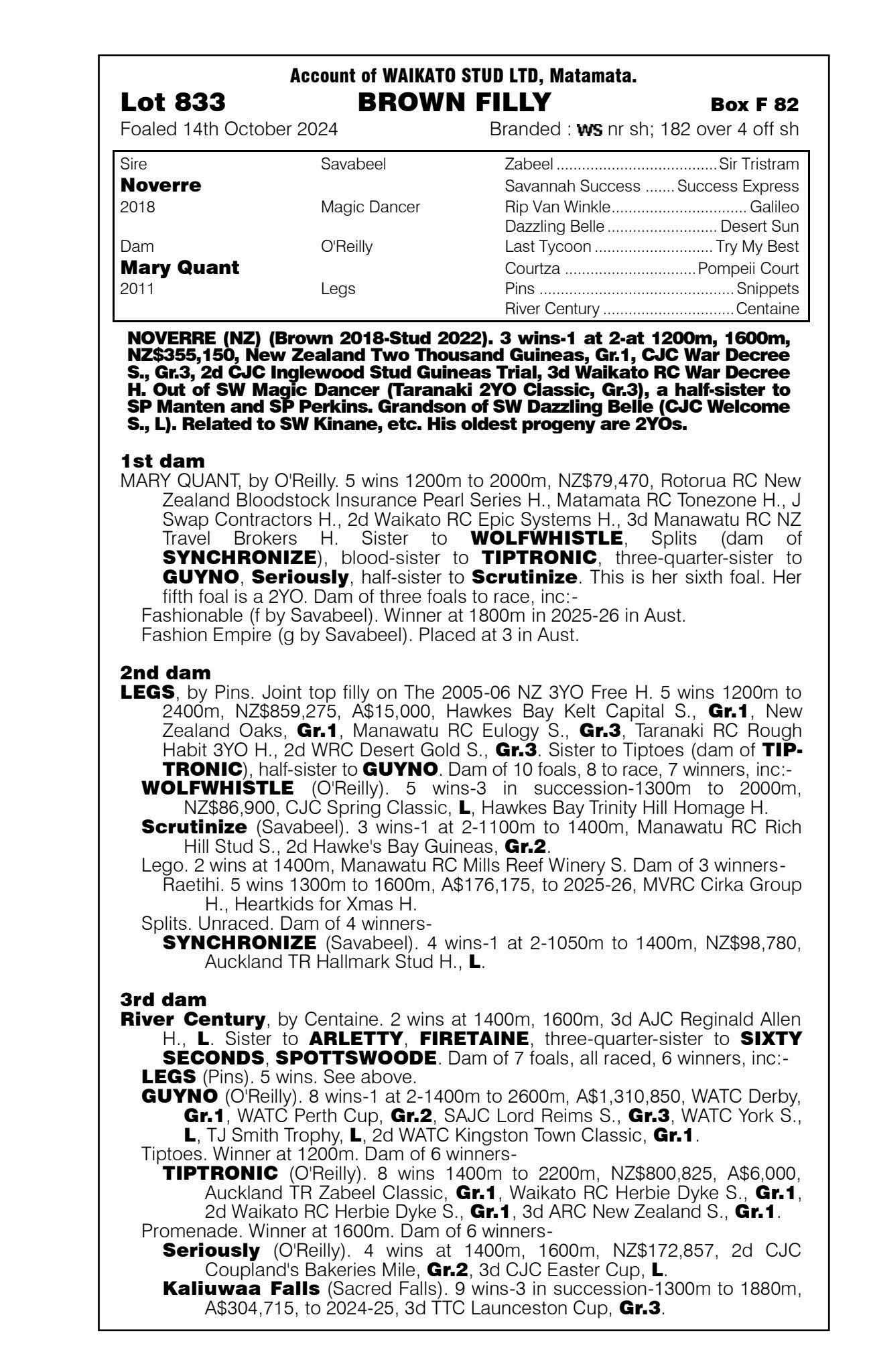 3rd - Unnamed (2g, Ardrossan) Sold $40k ‘25 NZB R2R to Tan Sri Richard Cham 4th - yearling filly by Noverre 5th - filly foal by Noverre