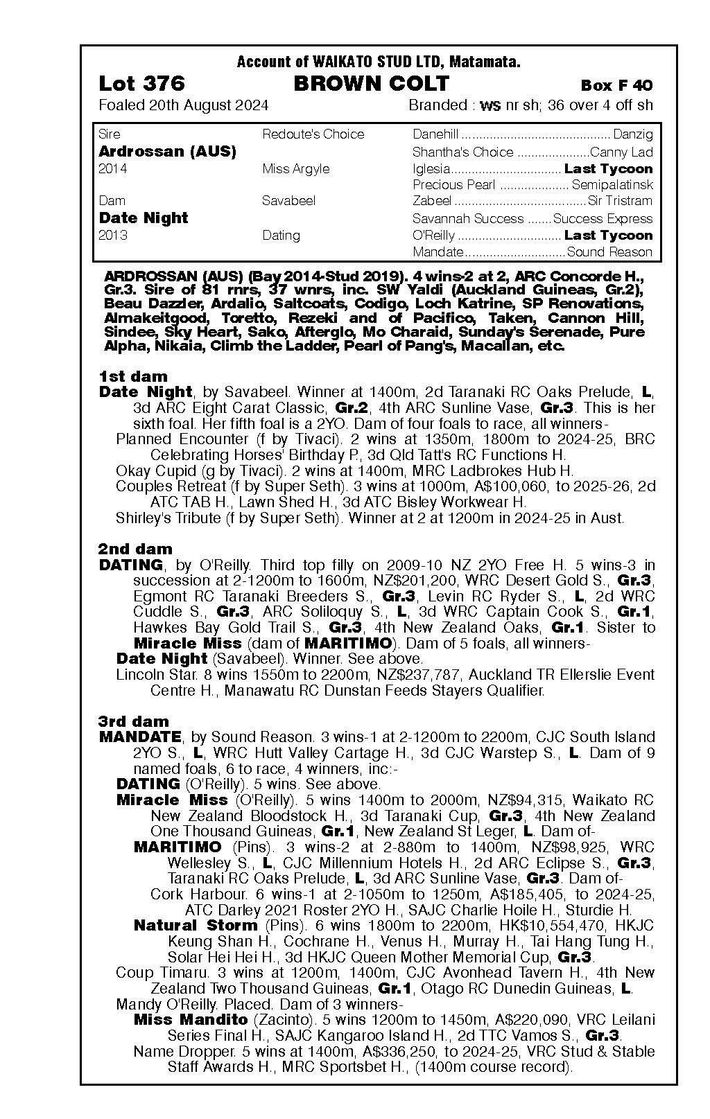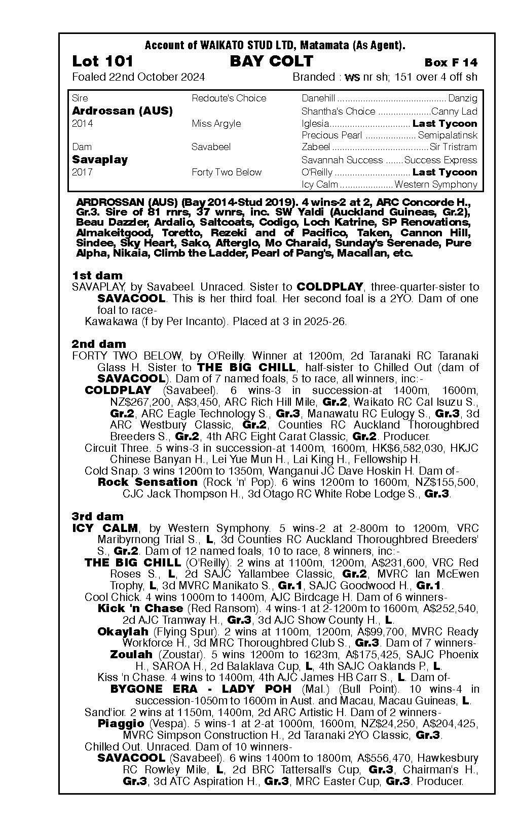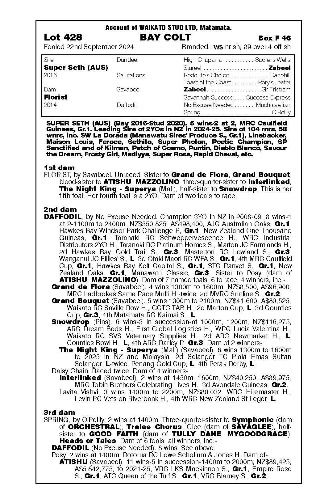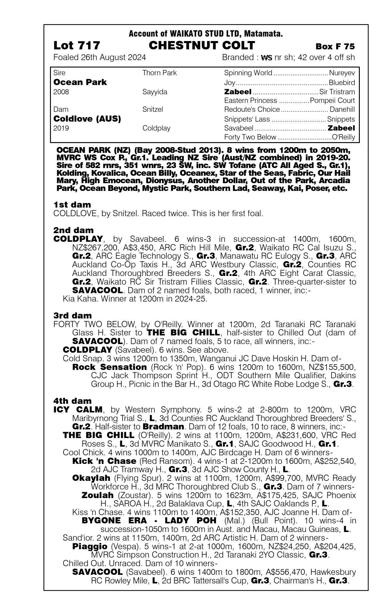 3rd - Unnamed (2g, Ardrossan) Sold $40k ‘25 NZB R2R to Tan Sri Richard Cham 4th - yearling filly by Noverre 5th - filly foal by Noverre