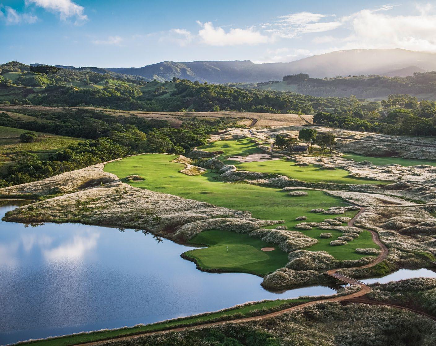 Heritage Golf Club, hugging the southern shoreline of Mauritius, is the Indian Ocean’s only 45-hole golf resort. Its two championship golf courses are contrasting in nature: the lush, parkland Le Chateau and the linksy La Reserve Golf Links (right). The latter, which was codesigned by past Open champ Louis Oosthuizen, is built upon former sugarcane fields and relies on native grasses to promote ecological diversity. It also offers a unique playing experience, with five par 5s, five par 3s, and a couple of drivable par 4s. While the club is home to a pair of luxury beach resorts (Le Telfair and Awali), guests can take an ultra-exclusive journey into 19th-century French elegance by staying in the private suite at Le Chateau, which overlooks ornamental gardens and its namesake golf course.