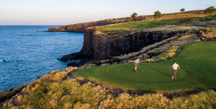 TEE OF DREAMS Ocean views and whale sightings are regular features at the resort’s award-winning Manele Golf Course, built atop dramatic lava outcroppings.