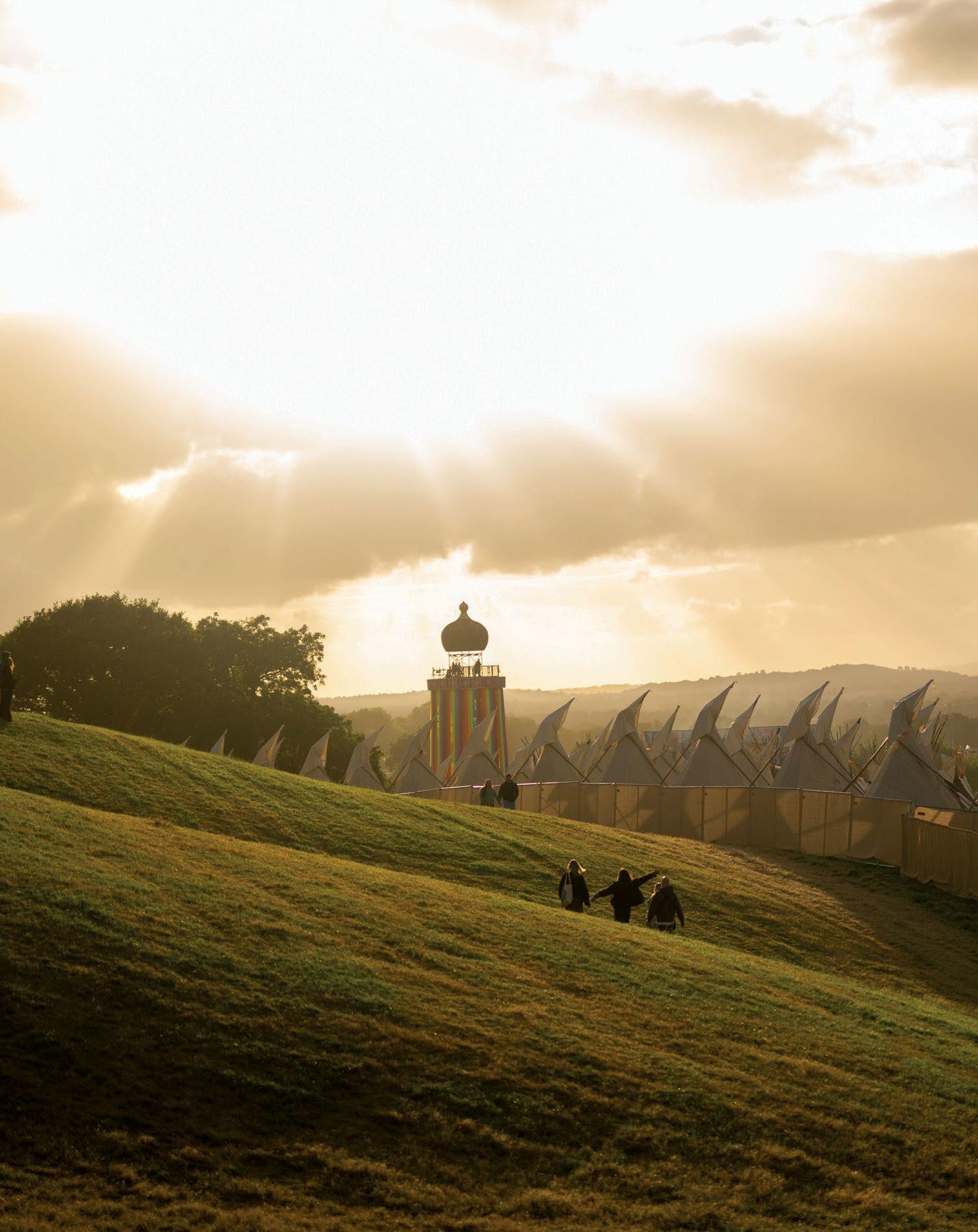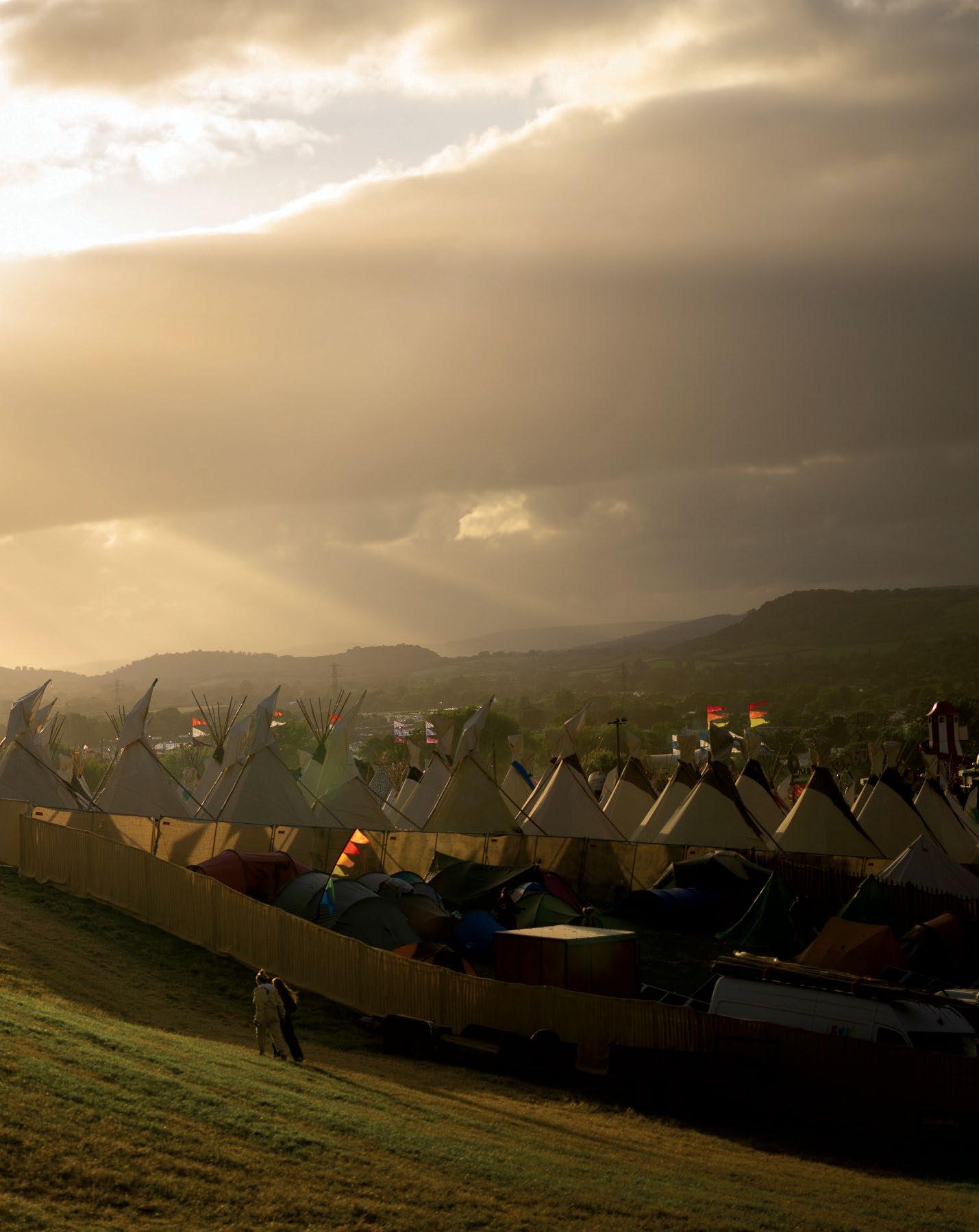Above: Take That onstage at BST Hyde Park in London in 2023. Previous spread: Attendees camped at the Tipi Field at 2024’s Glastonbury Festival.