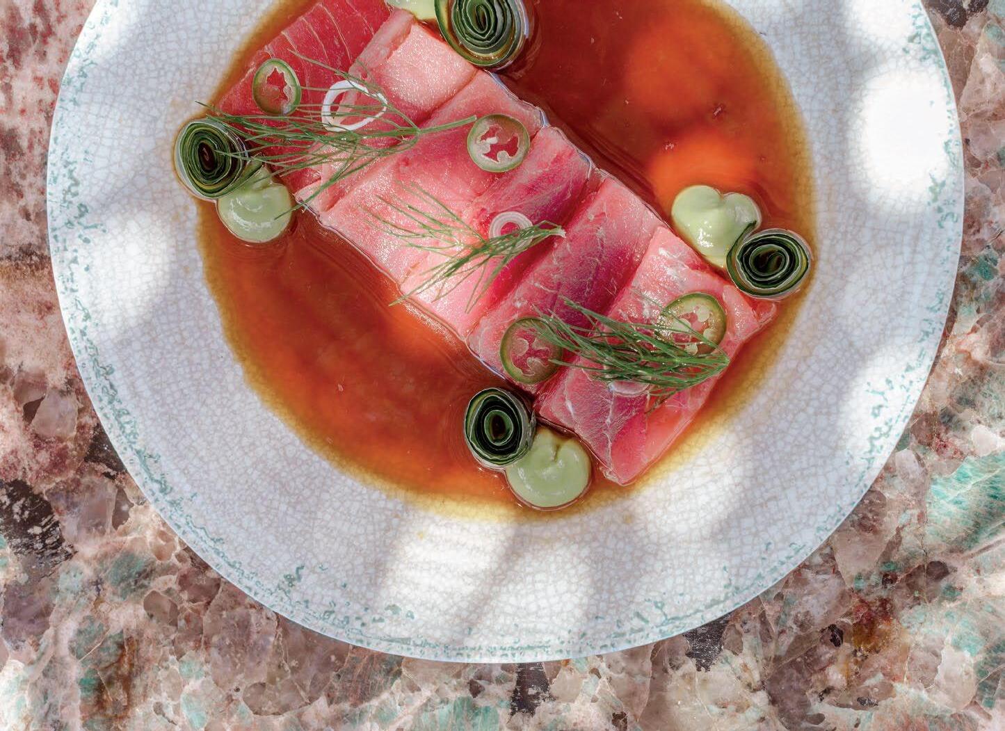 TASTE Dive into the modern mother cuisine of Mexico with expert Javier Cabral. Shown here: Zanaya at Four Seasons Hotel Mexico City (above left) and the tuna tiradito at Casa de Brasa at Four Seasons Resort and Residences Los Cabos at Costa Palmas.