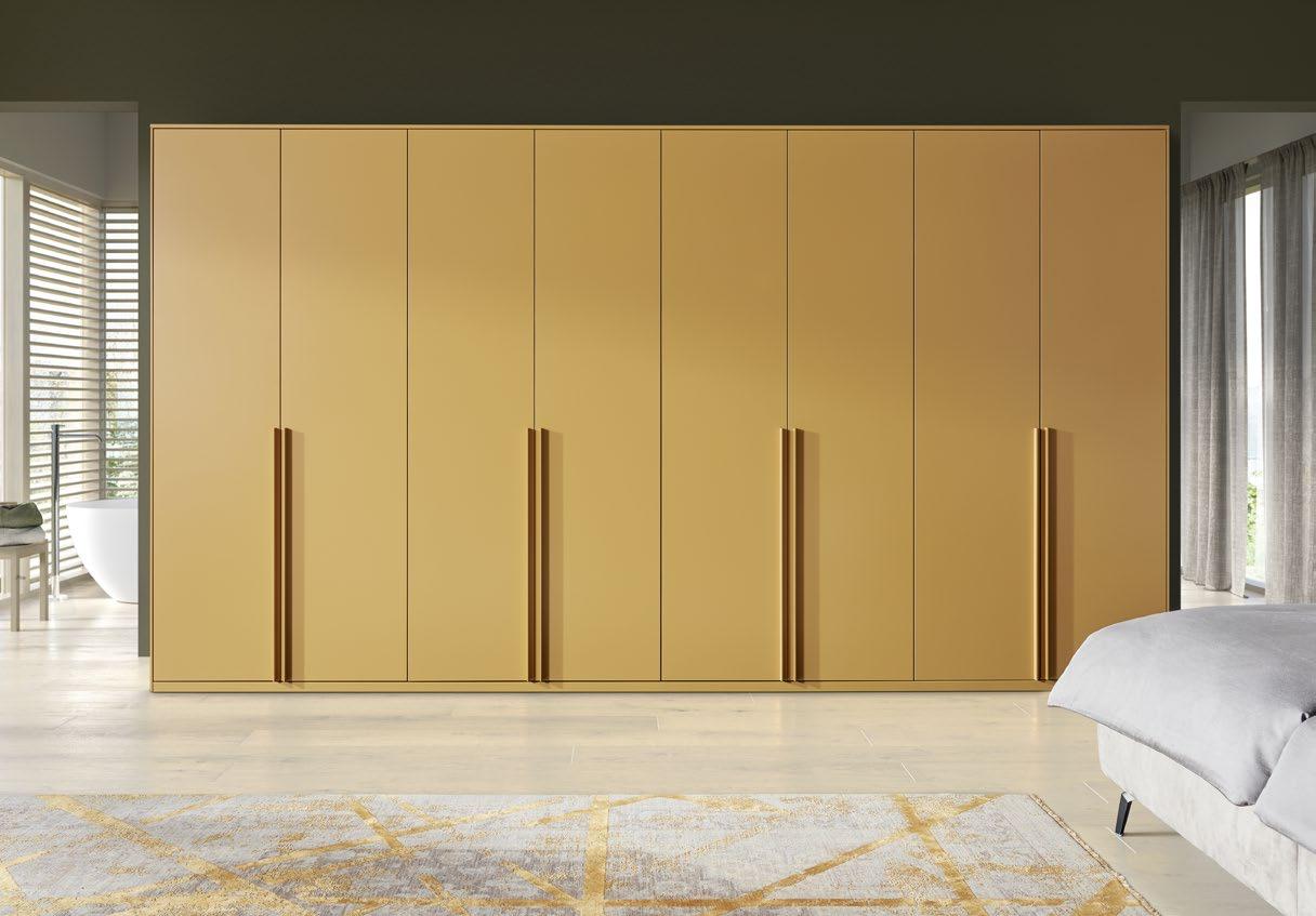 Trendkleur amber: Dat is veel meer dan alleen een kleur. Amber is een statement en slechts een van de 24 lakkleuren uit de collectie KARA-FRAME-SCHLAFEN – voor eenvoudige elegantie en gevoel voor stijl. Zijn zachte, licht goudkleurige tint heeft een bijzonder rustgevend effect en is daarom de ideale keuze voor slaapkamermeubels zoals onze royale vouwdeurkast. Amber heeft echter nog een voordeel, want de kleur past perfect bij de meest uiteenlopende inrichtingsstijlen. Of het nu minimalistisch-modern of rustiekgezellig is: met slaapkamermeubels in amber kies je voor een tijdloze en harmonieuze uitstraling.