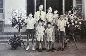 龍靈光牧師一生熱心宣教,竭力傳揚福 音,與同為傳道人的師母育有四子一女,龍 維欣牧師便是家中的四兒子。 「爸爸年紀小小已經可以繪畫大型畫 作,大家都喜歡看他作畫。」龍靈光牧師天 賦異稟,十歲已能獨立畫巨製,眾人皆嘖嘖 稱奇。後來他在美術師範學校學 習,18歲 時蒙恩歸信基督,師範學校畢業後成為一名 教師。「大約三四年後,爸爸蒙上帝呼召, 進入神學院全心裝備。」專心修讀神學的緣 故,龍靈光牧師期後極少執筆寫畫。 及至一天他靈感忽現,假如將《聖經》 之內容以美術、書法來表達,豈不妙哉? 「出於這份感動,爸爸便決心讀經、寫畫、 寫字,將他本來的嗜好混合應用,成為傳福 音的渠道。」龍維欣牧師說。 「我今日所吩咐你的話都要記在心上,也要殷勤教訓你的兒 「我今日所吩咐你的話都要記在心上,也要殷勤教訓你的兒女。 無論你坐在家裏,行在路上,躺下,起來,都要談論。」 (《申命記》6章6-7節) 50年代一家人在印尼。 龍靈光牧師50年代初於香港聖約翰座堂的副堂舉辦畫展。