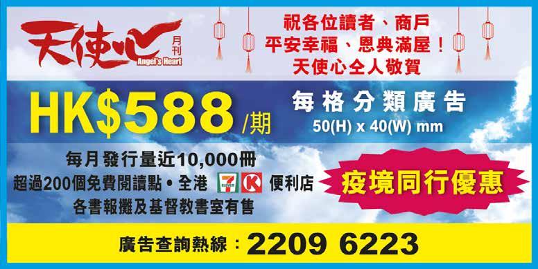 總幹事序言 PHOTO / Andy 、Tidus 02 總 今期是本刊第200期出版的時刻,也適逢是喬 宏太太小金子來港的日子。 因着疫情,已有數年未能跟喬媽實體見面,久 別重逢,喬媽雖然巳屆九十高齡,行動不便,但仍 然是處處感恩、充滿喜樂地分享上帝的作為,還記 得二十多年前拍攝福音電影《天使之城》時,我們 曾經說過:如果喬宏叔是天使奇俠,喬媽就是天使 女俠,今次再見到的喬媽的慈祥臉容,更活像一位 從上帝而來、充滿喜樂的天使! 喬媽今次跟我們分享她過往的一些傳福音心 得,就是當她向未信者介紹上帝和耶穌時,他們未 必能即時了解《聖經》中創造天地的真神是怎麼 一回事,但往往講到鬼,他們反而會更容易理解明 白。但基督徒是不應講傳揚鬼的,所以喬媽在傳福 音時有個秘訣,就是分享天使! 天使,可以是在我們身邊出現的好人,在我們 困境中幫助我們的人,就好像上帝為我們差派來的 天使,在我們需要時便會出現。 影音使團過去曾拍攝電視連續劇《天使家族》、 《生命天使》等以天使命名的節目。2006 年本刊創 刊時以「天使心」命名,就是盼望以天使讚美上 帝、榮耀上帝、見證上帝,按上帝的吩咐被差派到 不同的地方實踐使命。 還記得本刊第一期目的是建立一些人生反思的 話題,所以當時以《達文西密碼》這電影引起公眾 的話題,與讀者分享《達文西密碼》中的內容與 符號中,哪些是真實的,哪些是錯誤的,重申耶穌 基督是真實存在,是曾經被釘十字架死亡後三天復 活,我們以雜誌的形式引發公眾話題,再帶出《聖 經》中的真實資料,幫助基督徒朋友藉此向未信的 親友講解福音,可說是一個福音的教材。 我們當時更特別爭取將本刊在各大便利店發 售,也在港鐵站內刊登廣告,期待有更多人能接觸 本刊的封面與內容,以實體的封面進入每個家庭的 茶几上,方便基督徒在家庭聚會時更容易向親友傳 福音。 《天使心》月刊 的 祈願