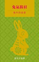 兔,好像其他動物一樣,有很多資料,今年 我想從下列幾個角度來作思想:一)動物中的兔; 二)文化中的兔;三)《聖經》中的兔。 1. 長耳朵——敏於神聲音 兔作為動物有很多特徵,最顯眼的就是牠那對長 耳朵,這代表牠的聽覺很靈敏,亦代表我們基督徒要 敏於上帝的聲音。屬靈的經歷未必是很強烈、很明顯 的信息;屬靈的領受可以在早上逼巴士或坐地鐵,闔 上眼睛默想時,上帝便將一個微小的聲音傳達給你, 告訴你今天要做甚麼,或告訴你今年要做甚麼。 2. 長牙齒——常咀嚼神道 兔的第二個體徵就是有一對過長的門牙,便於啃 吃紅蘿蔔,原來兔那對門牙是會不斷生長,故此牠經 常要啃咬硬東西來調節牙齒的長度,否則門牙便會長 到遮着自己的口,吃不到東西。這個特徵提醒我們要 常咀嚼上帝的話語,晝夜思想。 3. 紅眼睛——別昏暗嫉妒 兔還有另一個特徵,就是紅眼睛。原來白兔 眼球的微絲血管非常多,所以在白毛的襯托下, 看上去就像行桃花運一樣,有粉紅色的眼睛。其 實這只不過是那些特別白的毛跟牠眼睛的微絲血 管拼在一起,就凸顯出紅眼睛出來。兔的耳朵雖 然靈敏,但視力卻很弱。這讓我們看見,如果屬 靈的眼睛看得不清楚且昏花的話,全身就會黑暗 (《馬太福音》6章23節)。