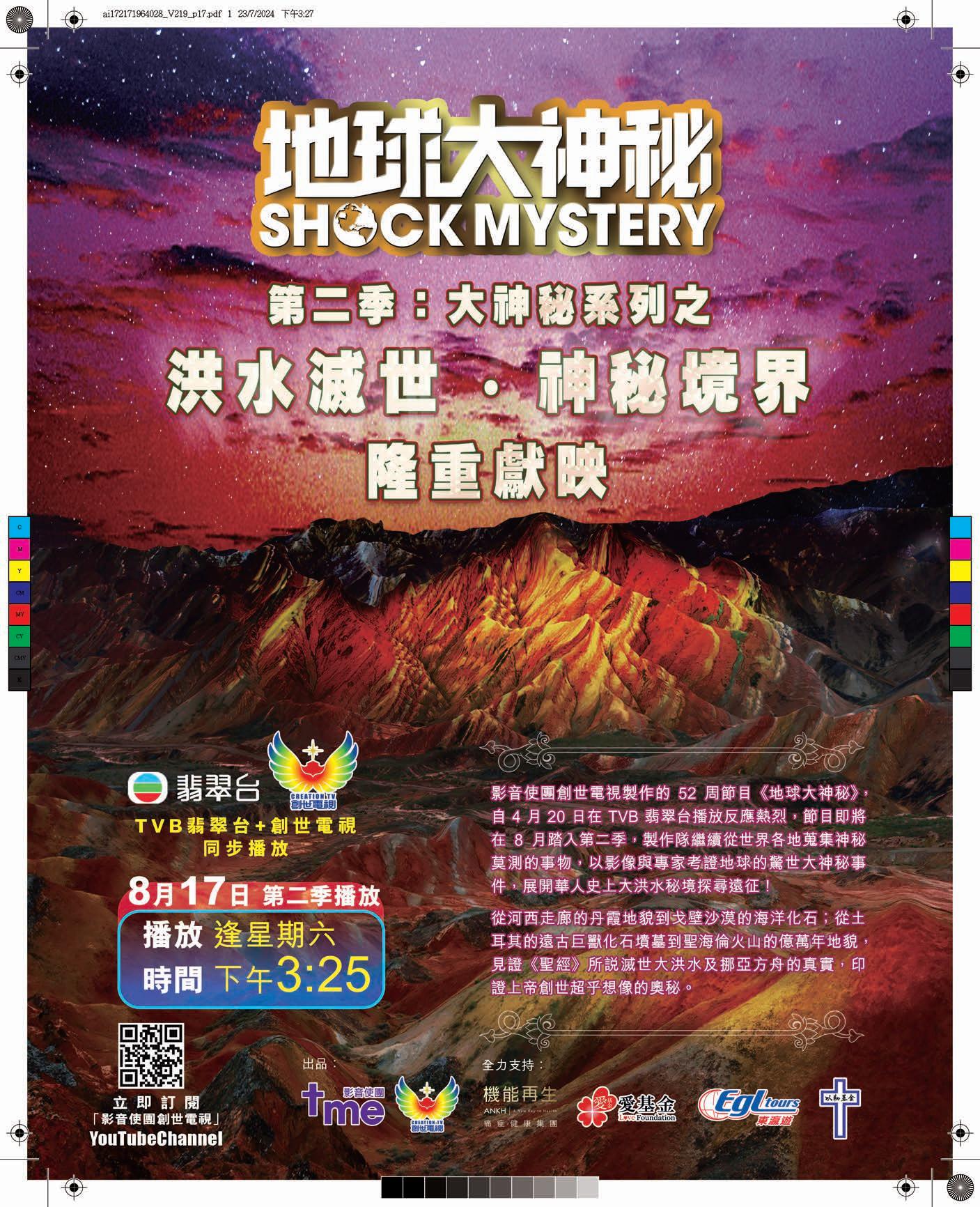 剛過去的7月,影音使團「創世電視」在香 港會議展覽中心成功舉行了「地球大神秘」末 世佈道及培靈大會,我們透過了從中國河西走 廊到全球的遠古文明及洪水秘境的影視及分 享內容,帶出「人從哪裏來、我們是誰、 將要到何處去」這些福音主題,不少參 加者明白生命的使命和意義,願意決 志歸主。