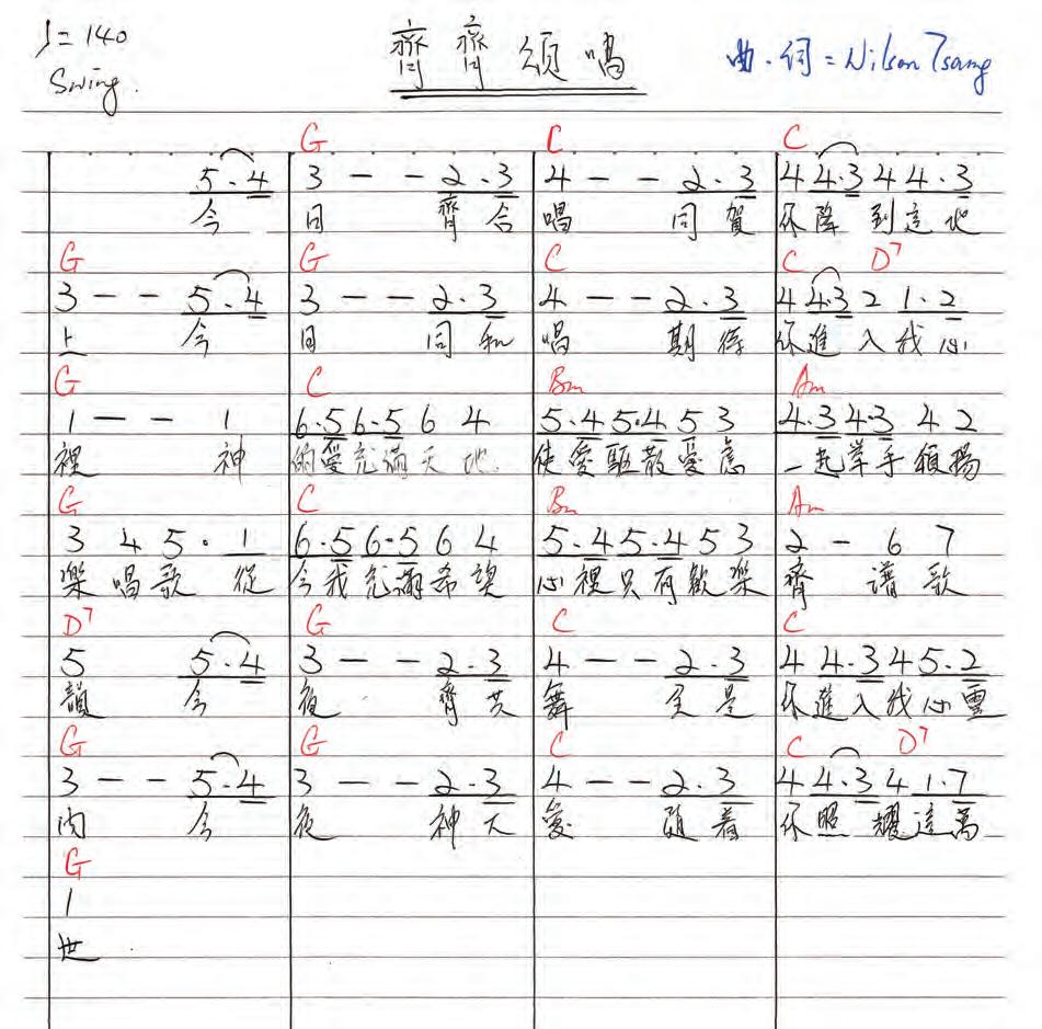 有說這一代年輕人面對的時局將比較艱 難,不單是政治、社會和經濟,也包括氣候、 環境生態和各樣天災。置身這時代,重温〈青 年向上歌〉及類似曉諭人生道理的詩歌,也許 給予我們及下一代很大的啓示:活在危險重重的 日子,真的需要真誠、潔淨、剛強、膽壯等等質 素。我們更加要確信,上主樂意把這些質素賜給 祂的兒女,也就是我們的下一代。